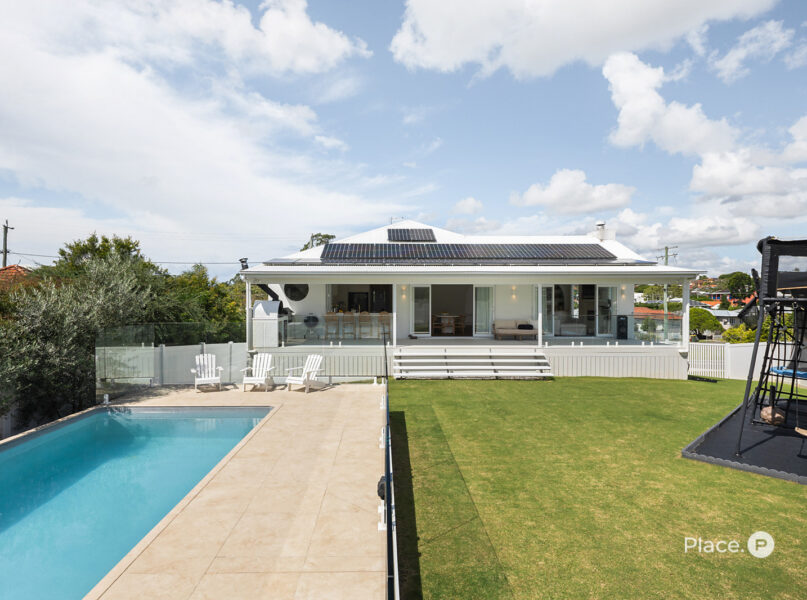 An exclusive oasis, a fully-fenced Tiftuf-turfed rear yard benefits from mature gardens, a family-friendly sandpit and a 6×3-metre heated in-ground magnesium swimming pool. Perfect for relaxing in style, a poolside cabana has a hanging bed.