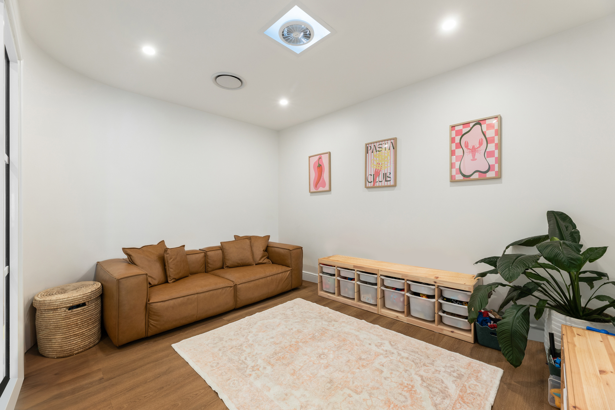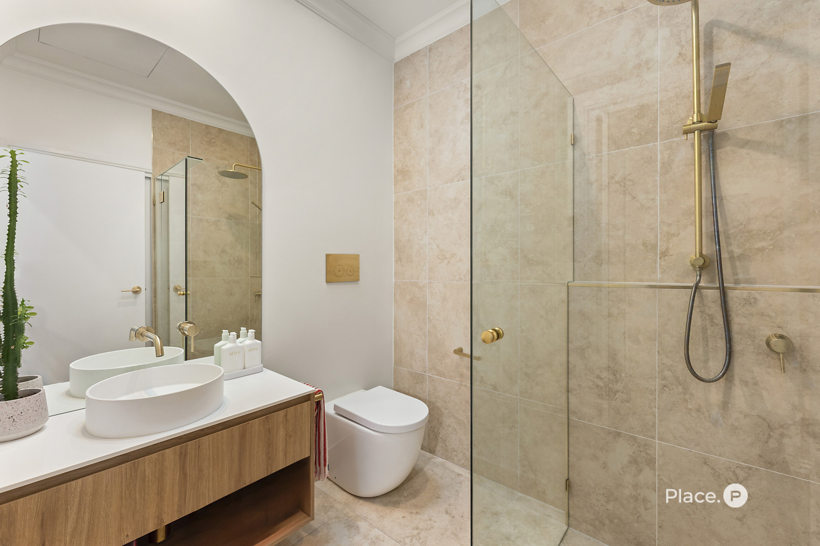 Finishing the upper level is a generous media room, plus an opulent master suite with a walk-in robe. An open ensuite is made truly lavish by micro cement render detail, a large shower and a separate circular bath.