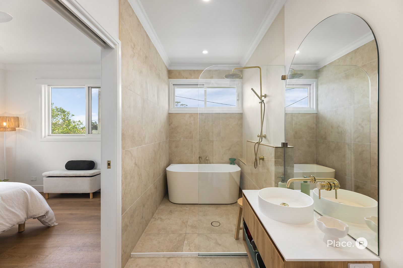 Two additional bedrooms both have their own dual-access ensuites; one features a walk-in robe and the other boasts a built-in robe.