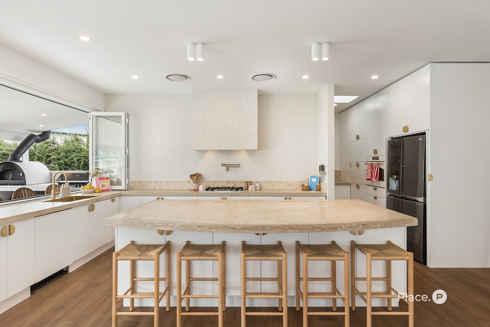 Downstairs, a sizeable fourth bedroom or study has a kitchenette, a built-in robe and an accompanying full bathroom.