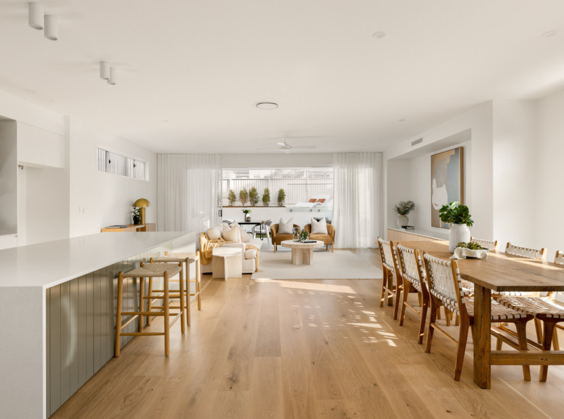 Setting the standard for lavish living from the outset with its attractive contemporary facade and landscaped front gardens, the home has been meticulously crafted and built by IDB Group. Bright and airy, the property’s interior showcases exquisite timber floors, plentiful glass and a fresh white colour palette.