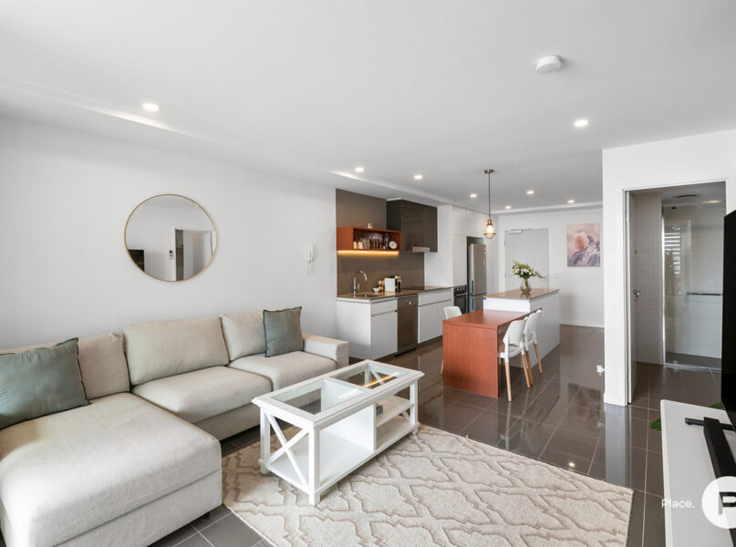The living and dining rooms are a bright and airy, with modern tiling and ample natural light. Split system air-conditioning ensures comfort year-round, and the jaw-dropping views from the balcony are surely to inspire. You’ll also find a sleek and stylish kitchen, equipped with stainless steel appliances and gleaming benches.