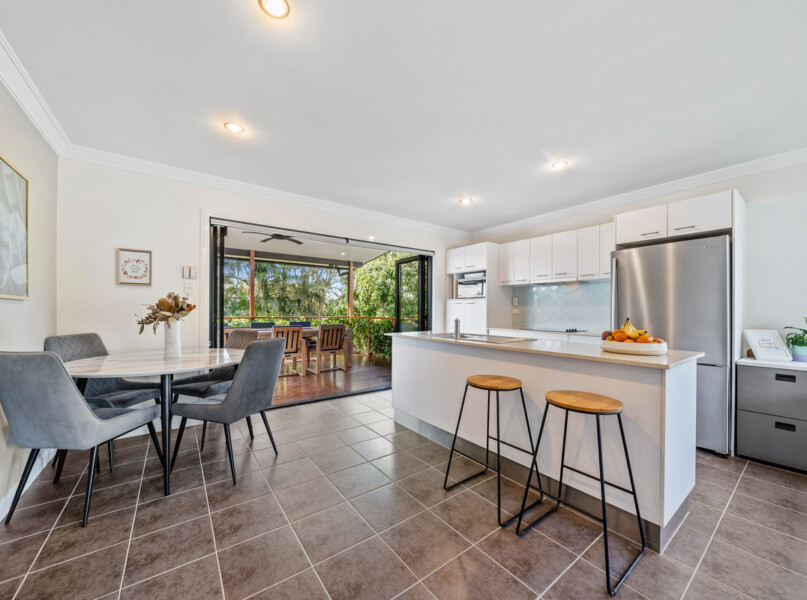 – An immaculately kept & elevated deck opening up from the kitchen/dining area