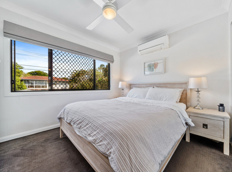 – Three spacious carpeted bedrooms with ceiling fans, air-conditioning & built-ins