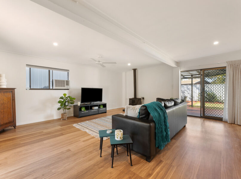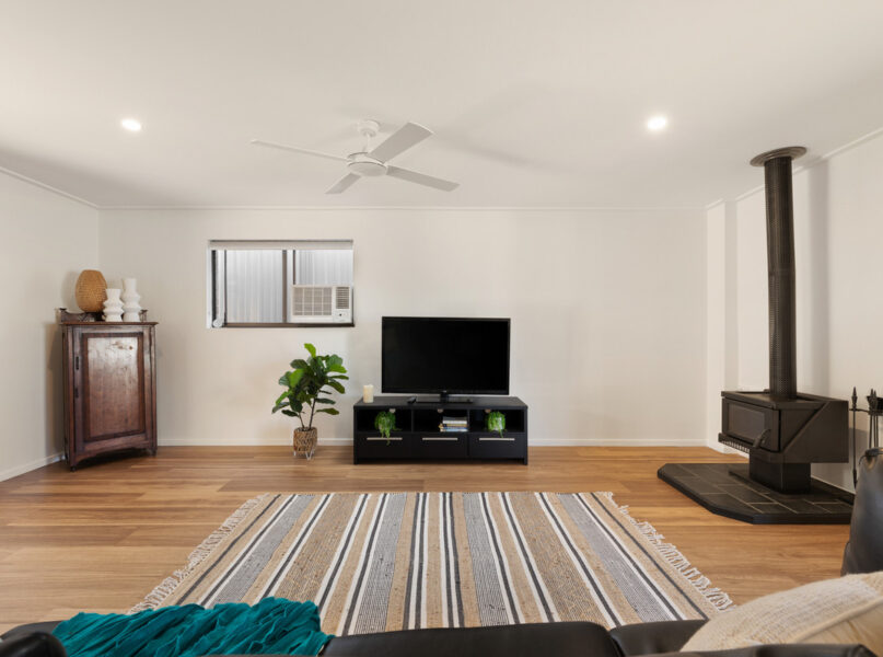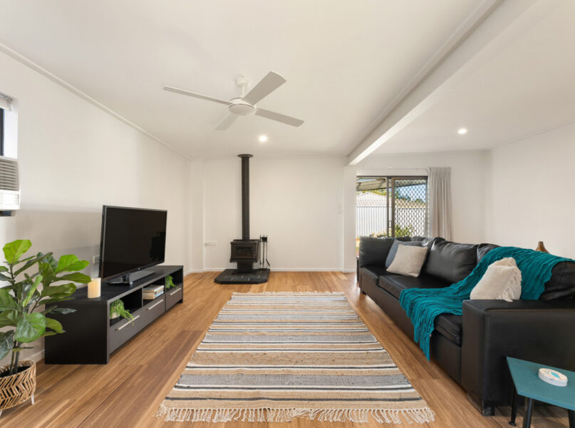 Complete with a dual carport and a large front yard, the home also includes air-conditioning, ceiling fans and brilliant storage.