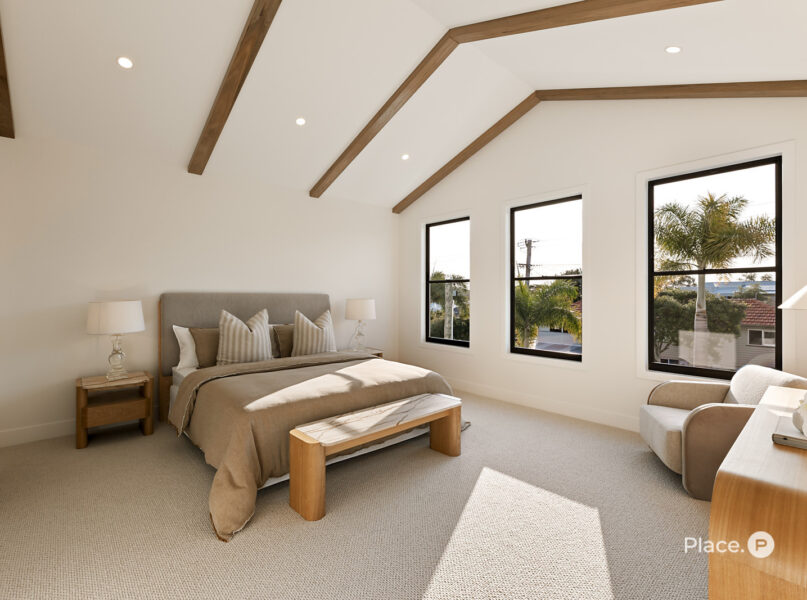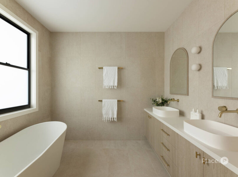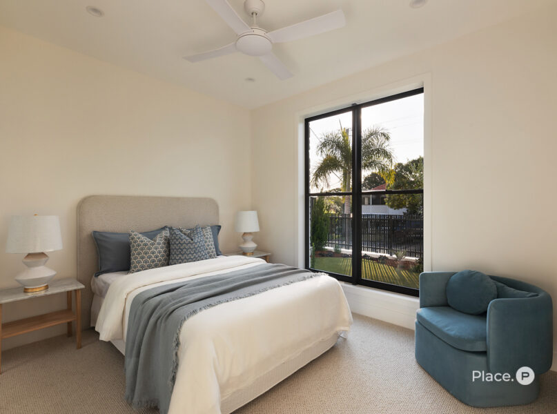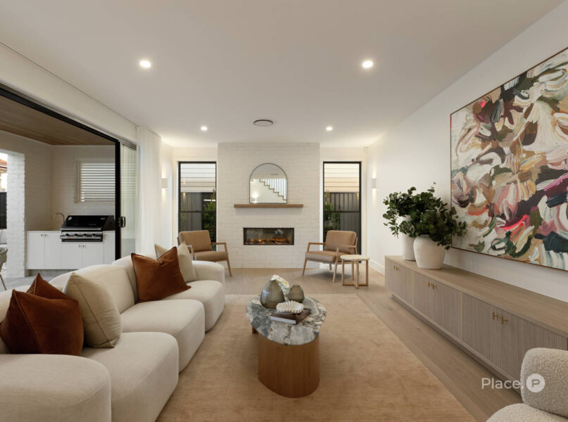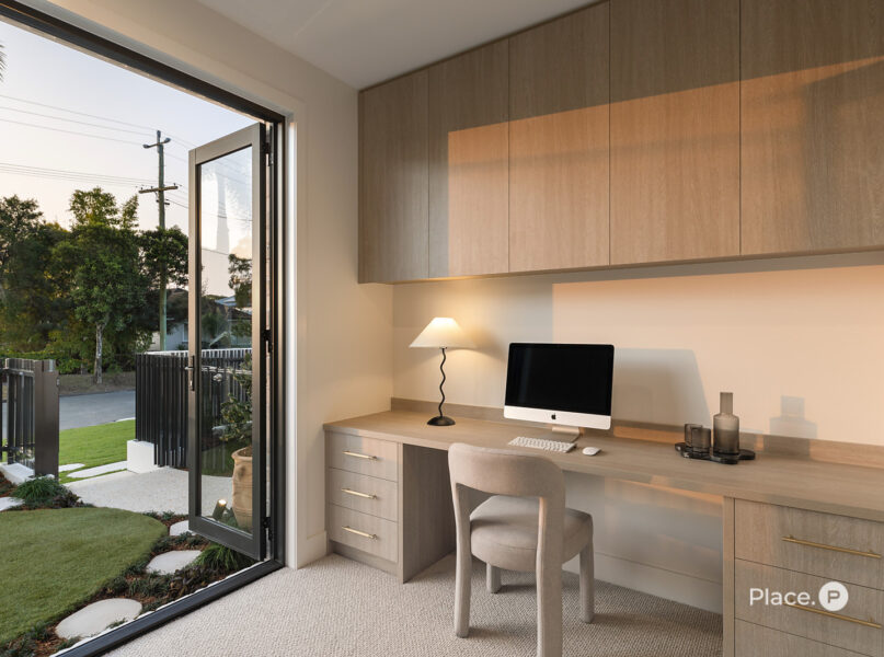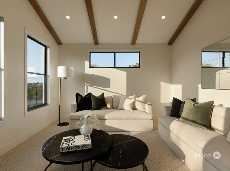 A second living area on this level provides additional space for family gatherings or relaxation, enhancing the home’s functionality. The balance of the 3 bedrooms have large built in robes and even a built in study desk, whilst sharing an oversized bathroom with free-standing bath, continuing the luxury finish of white truffle and luxury basins.