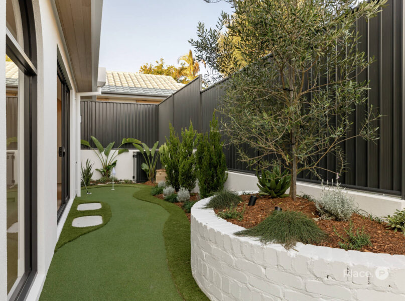 Outside, the property offers a tranquil escape with meticulously landscaped gardens and putting green, providing a fun, yet serene backdrop for relaxation or alfresco dining. The home also includes two secure car spaces, ensuring both convenience and security for residents.