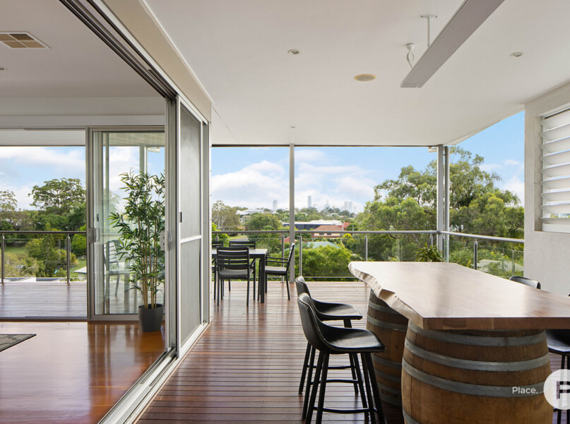 This architecturally designed masterpiece with entirely uninterrupted city views, this is an incredibly rare opportunity to secure a prime piece of inner-city real estate. Homes of this calibre do not often become available and is sure to be in high demand. The home has been flawlessly designed to seamlessly connect the kitchen, living & dining areas to the massive outdoor entertaining deck overlooking the Brisbane City Skyline. Walls of glass, louvres and a fully self-automated blinds system invites unparalleled views from the upstairs & downstairs levels of the residence.