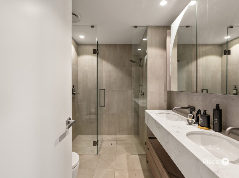 The apartment features spacious open-plan living and dining areas, as well as an enclosed balcony with breathtaking outlooks and plentiful entertainment space. Glass bi-fold doors blur the lines between the central living zones and the al fresco areas, ensuring seamless connection.