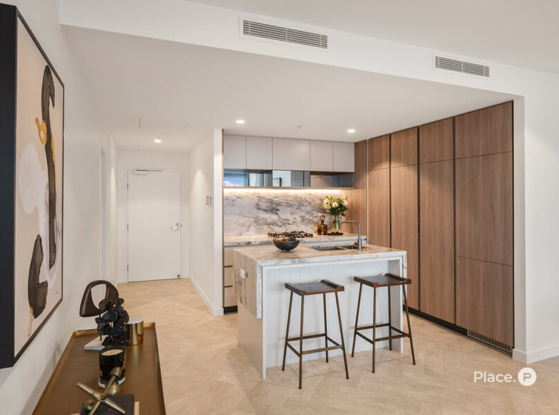 Complete with ducted air-conditioning and ceiling fans, the apartment also offer 24-hour security, a storage cage, secure parking for two cars and access to the complex’s lavish swimming pool, gym, steam room, sauna and residential lounge.
