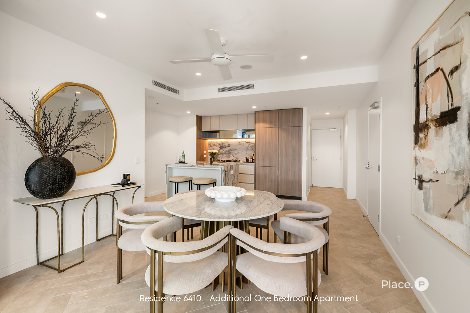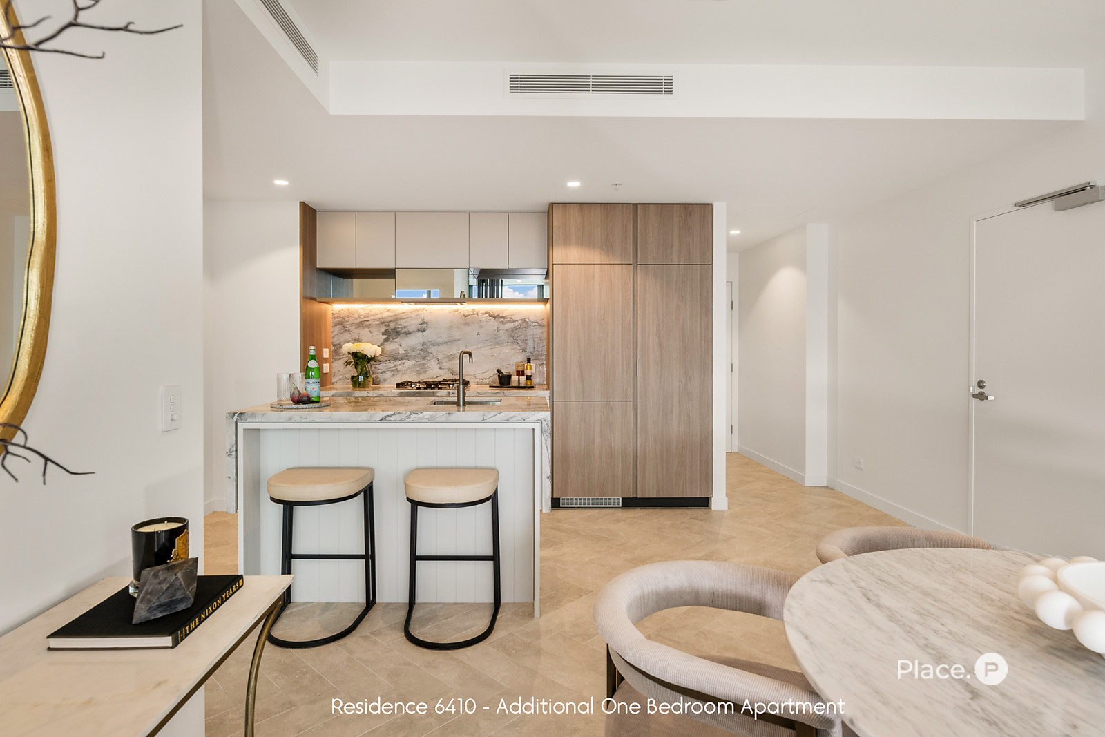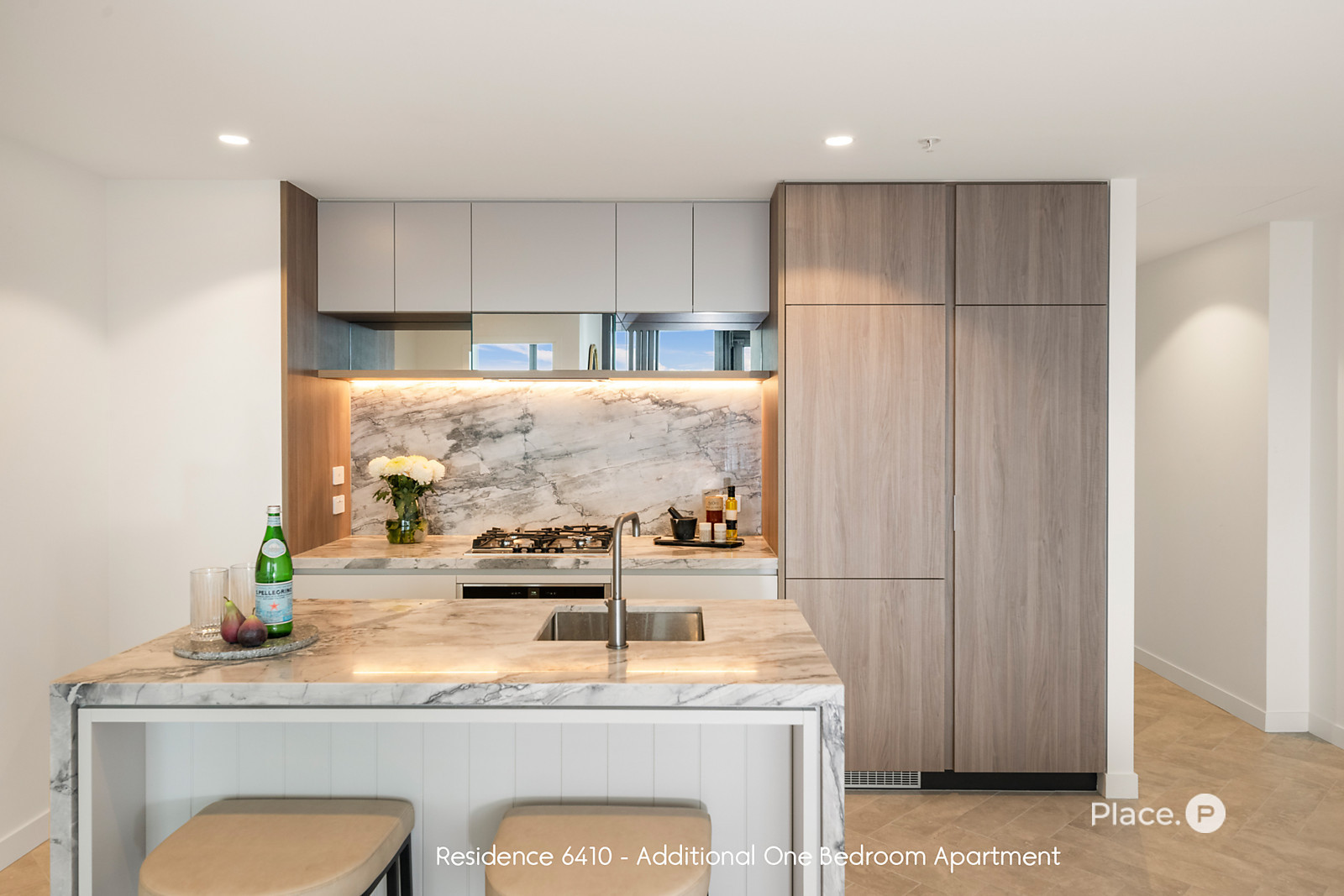 Boasting 102sqm of sophisticated living space, Residence 6409 is made undeniably elegant by details such as herringbone timber floors and sleek joinery. Banks of full-height glass showcase the mesmerising vista and encourage natural light to easily flow throughout. A prime eastern and north-eastern aspect captures stunning sunrises each morning.