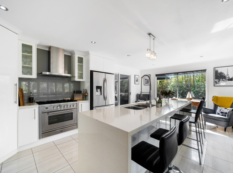 In the laundry, practical 40mm stone benchtops elevate both functionality and aesthetics. This home truly encompasses all the features necessary for comfortable and stylish living in a serene cul-de-sac location.