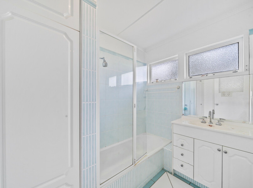 The well-thought-out bedroom design prioritizes both comfort and convenience. Both Bedroom One and Bedroom Two provide access to a deck and are equipped with ceiling fans for added comfort, with the larger of the two possessing a split-system air conditioner. Meanwhile, the master bedroom is a retreat of its own, offering a walk-in robe, an ensuite with twin basins, and a split-system air conditioner, allowing you to tailor your climate control to your preferences.