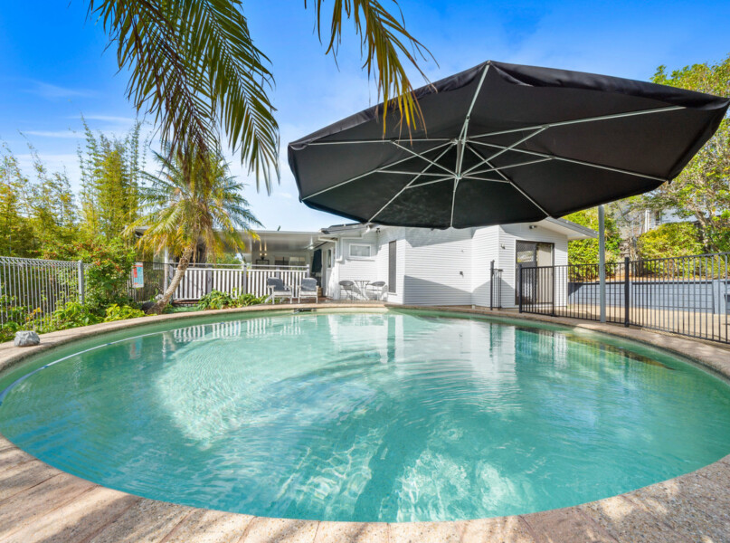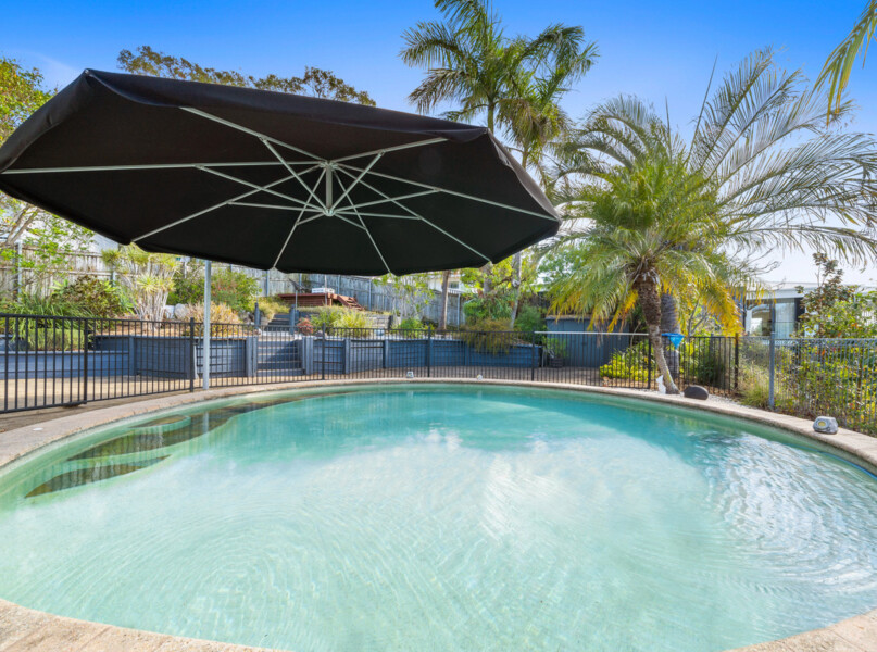 Step outside to discover the expansive undercover outdoor deck that overlooks the inviting circular saltwater swimming pool, which is enhanced by a large adjustable swing umbrella, providing shade and comfort for your poolside relaxation – the perfect setting for relaxation and entertaining. Additionally, an elevated gazebo area offers captivating views of the city.