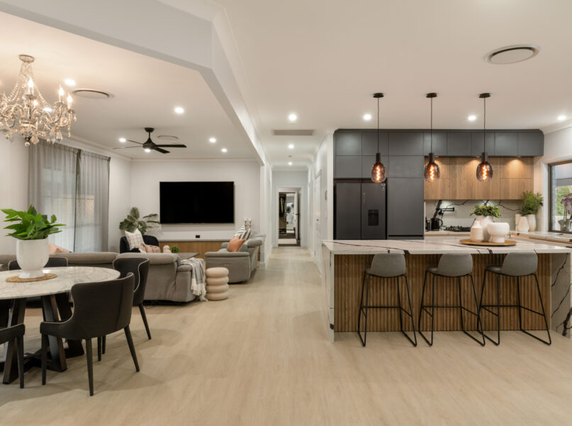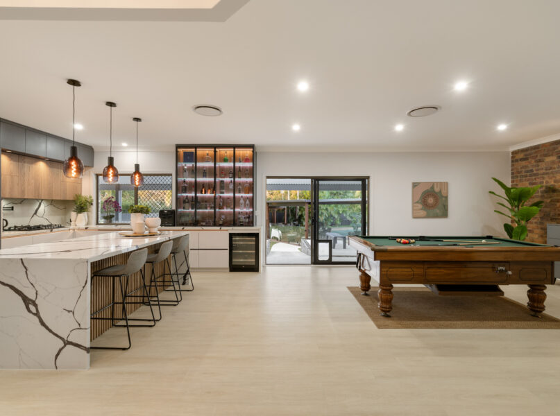Awaiting families and entertainers alike, the main residence boasts a spacious open-plan living and dining area bathed in natural light. An impeccable adjoining kitchen displays quality appliances, a breakfast bar, pendant lights, stone benchtops and ample cupboard storage. There is also an impressive rumpus area and a wet bar, plus a covered al fresco area that you will love sharing with guests.