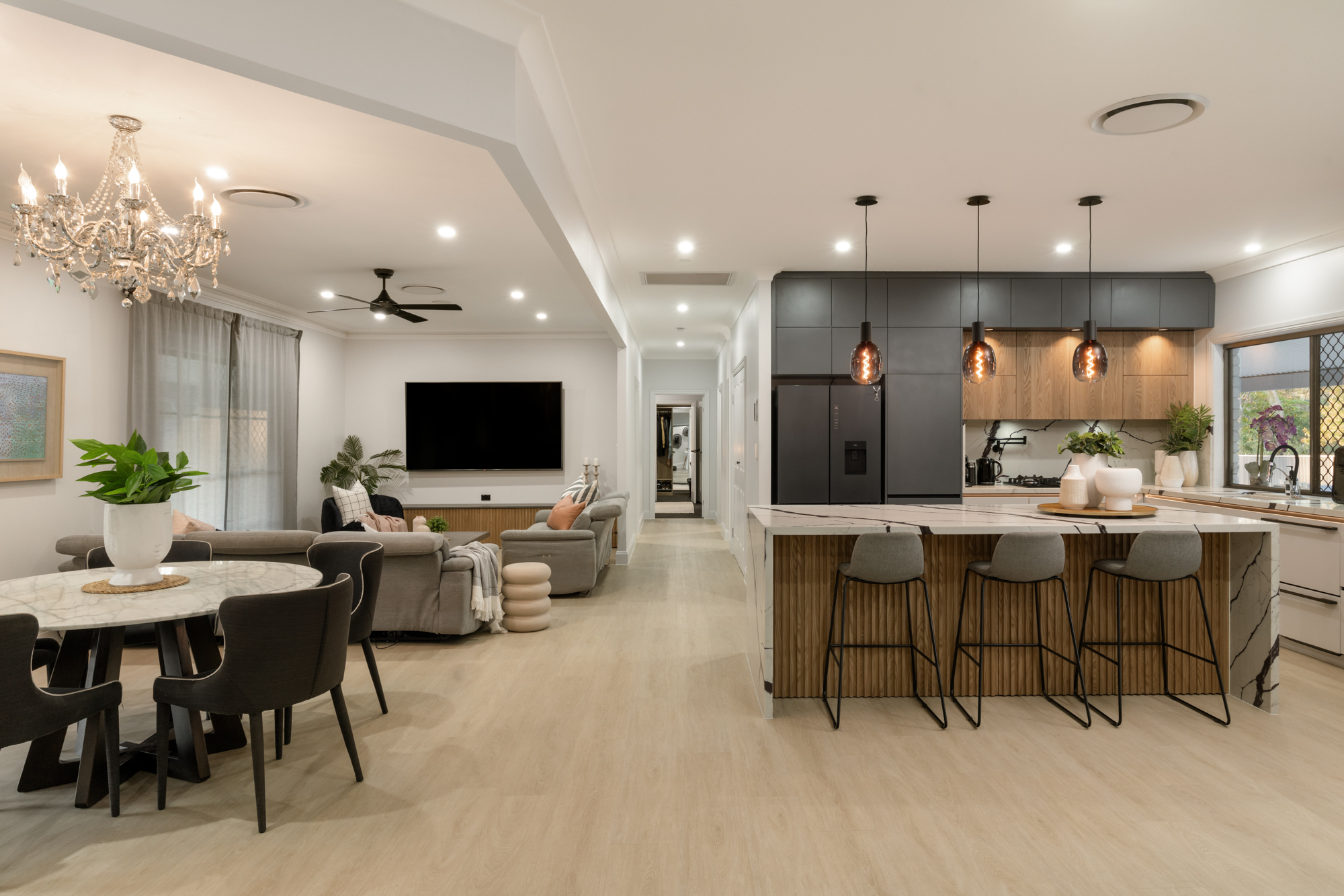 Connected to the main home, a self-contained guest quarters area has its own living/dining area, a designer kitchen and private entry. Two sizeable bedrooms are serviced by a large main bathroom, ensuring convenience for both guests and residents.