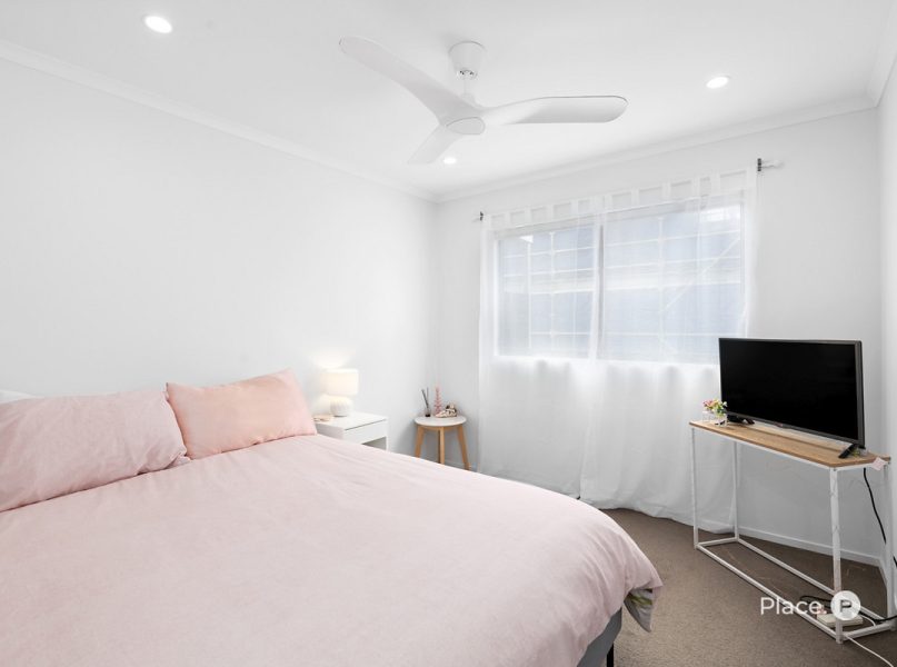 The bedroom is completed with a large walk-in robe and an abundance of natural light. New fans and LED downlight provide a modern and comfortable feel.
