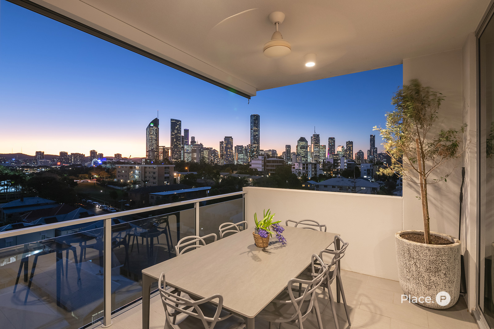From the moment of arrival, a sense of quiet sophistication unfolds. A beautifully styled gallery entrance leads to an expansive open-plan living and dining area, where full-height glass frames sweeping vistas from the Brisbane skyline and Botanic Gardens to South Brisbane and the river beyond. The vast entertainer’s balcony offers the ultimate setting to enjoy breathtaking views of the city skyline and watch the spectacular sunset as it reflects off the buildings — a truly captivating backdrop for evening celebrations or simply unwinding in style.