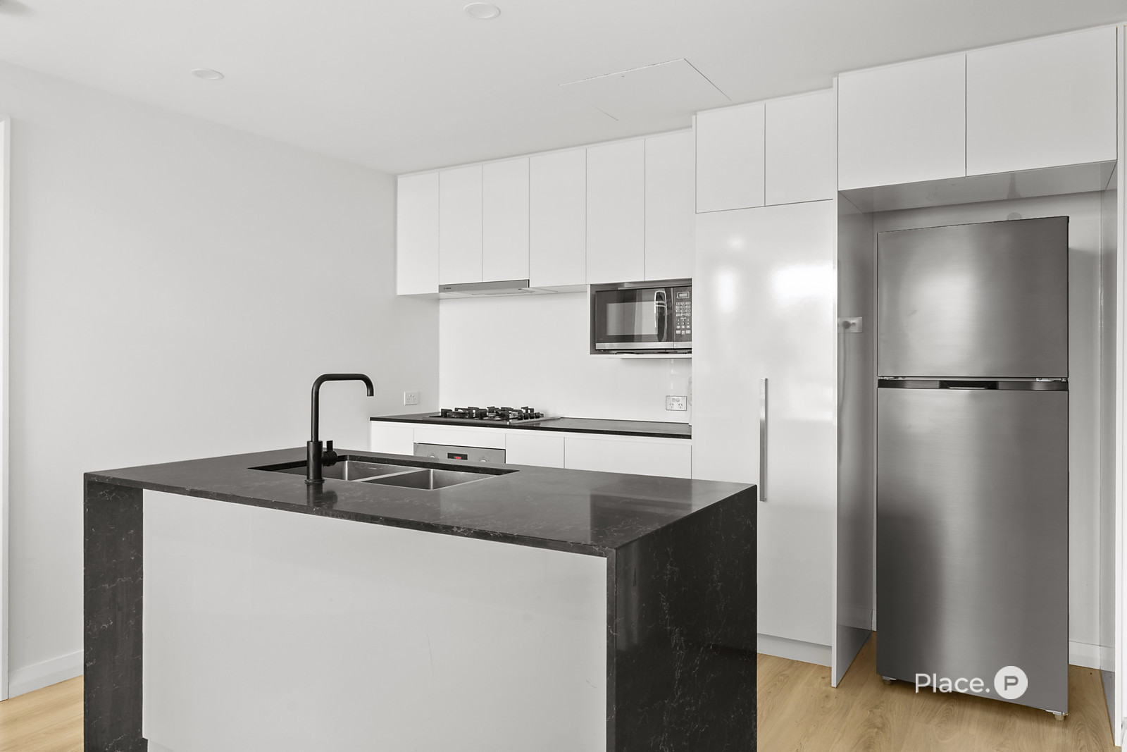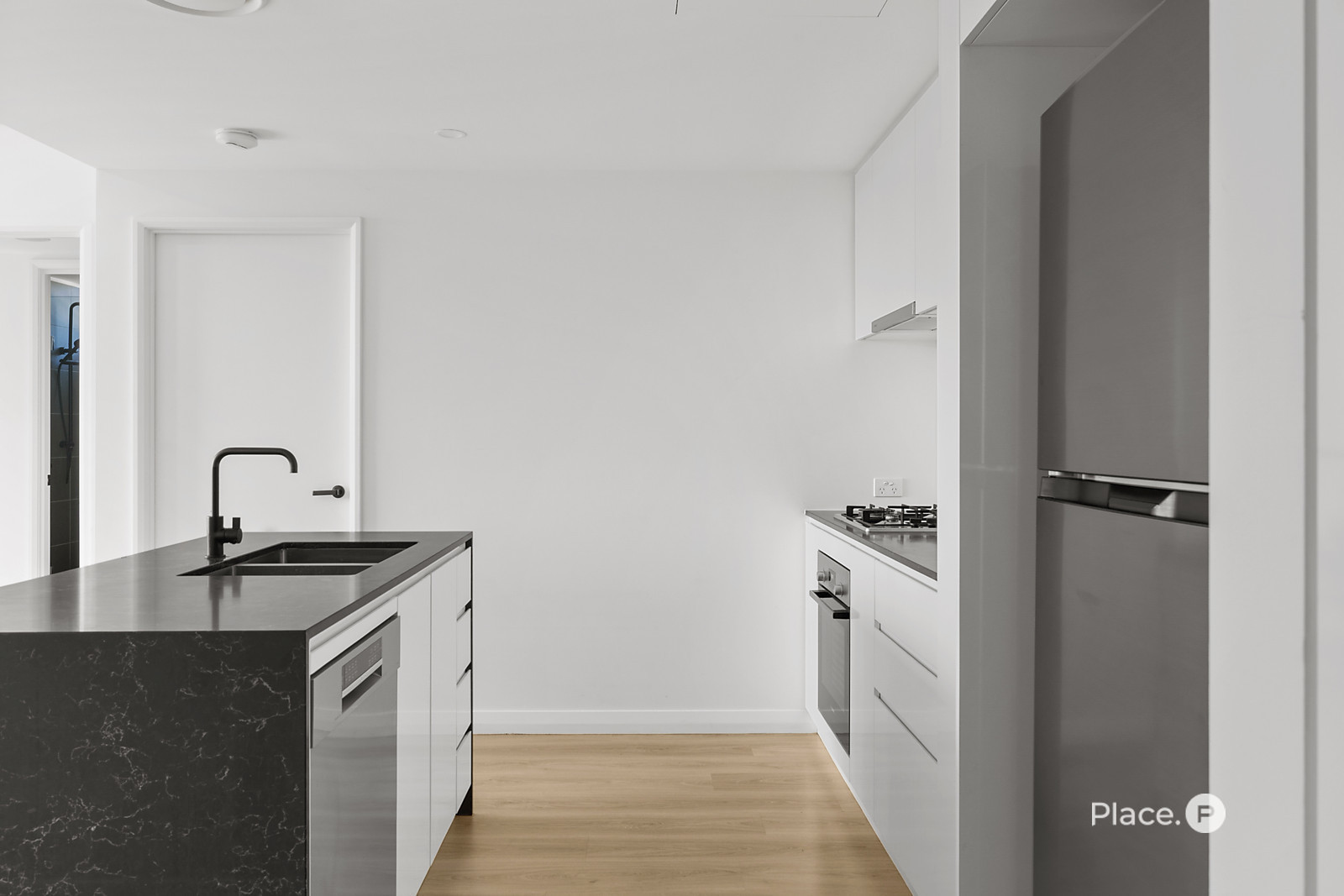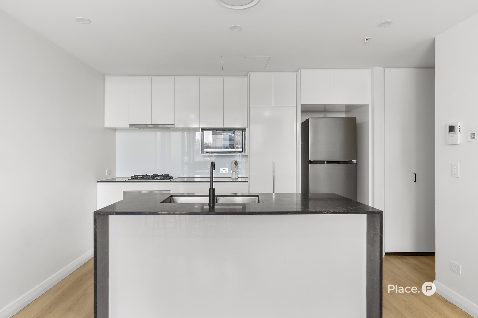 North-west facing and intelligently designed, the apartment makes the most of every inch. Floor-to-ceiling windows fill the space with afternoon warmth, while an open-plan layout keeps living simple, bright, and flexible. The kitchen is streamlined and modern — stone benchtops, gas cooking, and quality appliances all within easy reach — designed to support both busy mornings and relaxed nights in.