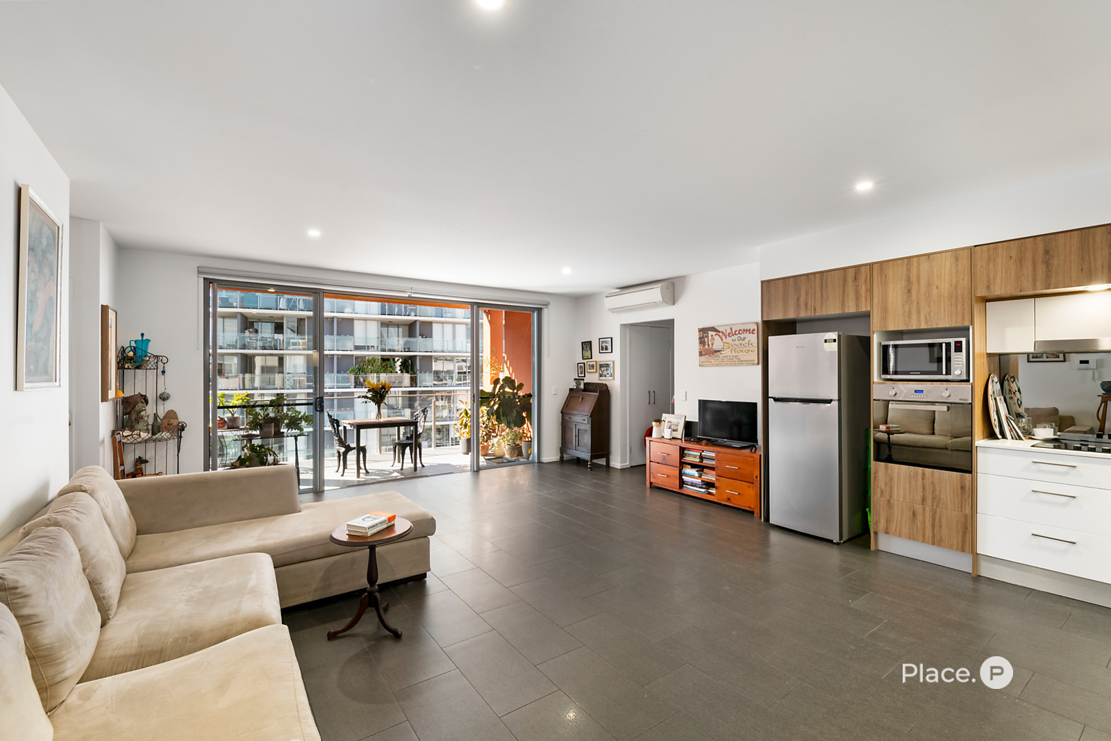 Positioned in the vibrant Kurilpa precinct of West End, Unit 732 at Boston West End offers an unmatched lifestyle of space, style, and convenience. Surrounded by trendy cafes, award-winning restaurants, and beautiful parklands, this oversized apartment is designed to integrate seamlessly with its natural surroundings. Enjoy stunning panoramic views that stretch from the city skyline, across the Brisbane River, and out to the distant mountains.