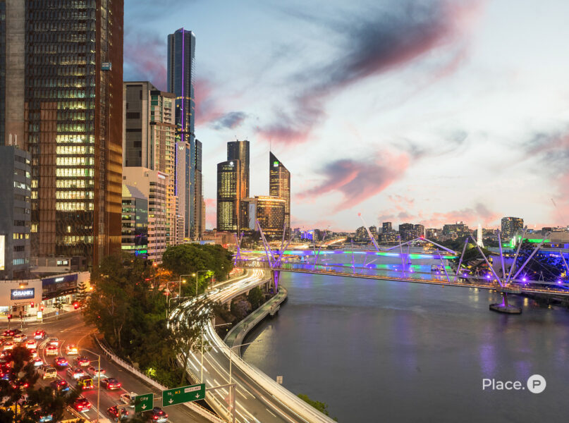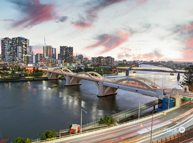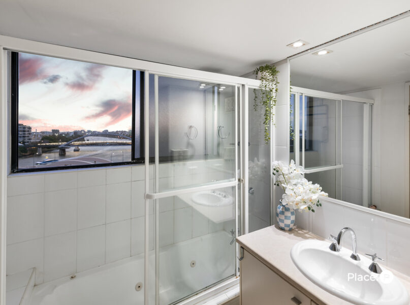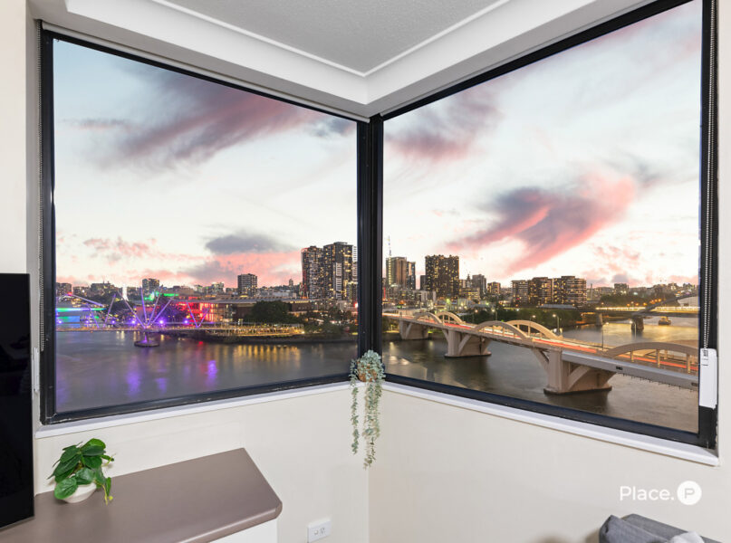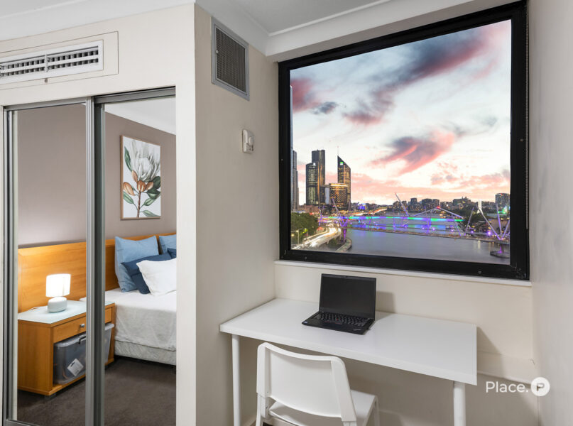 Capturing the nighttime light show and framed by the unique cutout window over the study nook in the main bedroom allows a full view of the stunning Casino and Brisbane’s newest walk bridge taking in the full cityscape for your evening pleasure.