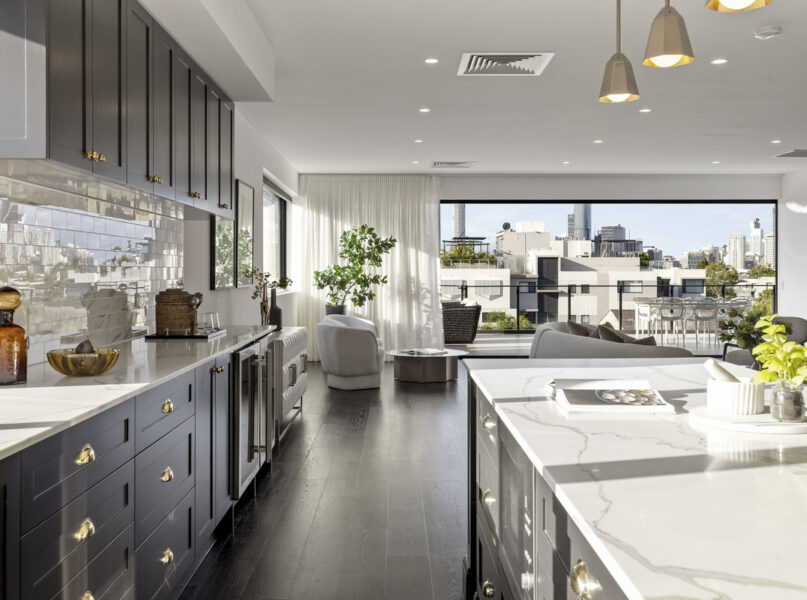 This property is complete with a powder room and an internal laundry, as well as rare secure and stacked parking for four cars. Additional features include ducted air-conditioning, intercom security, lift access, and a security system.