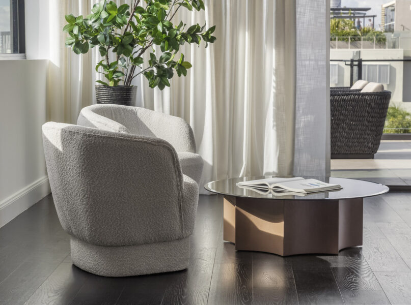Experience the awe-inspiring vistas of the city through expansive full-height glass windows that flood the space with natural light.