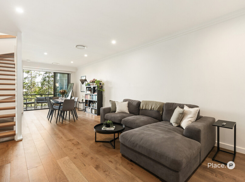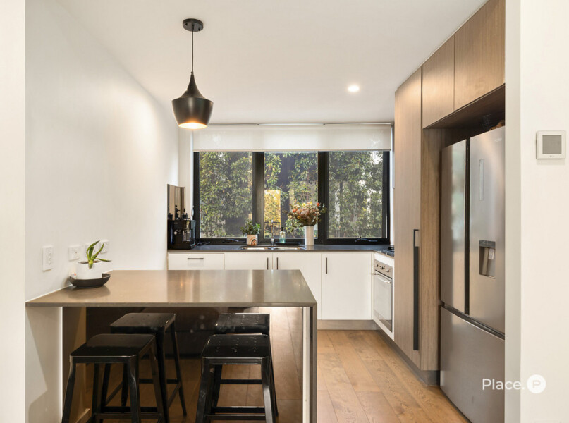 On the property’s third level, an ensuited master bedroom is accompanied by a stylish main bathroom and two additional bedrooms; all three are fitted with built-in robes. The residence also includes reverse-cycle air-conditioning, ceiling fans, an instantaneous gas hot water system and security doors and screens. Fire- and sound-proofed walls between the townhome and its neighbours ensure privacy.