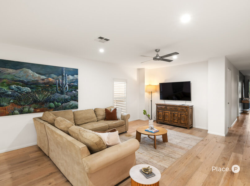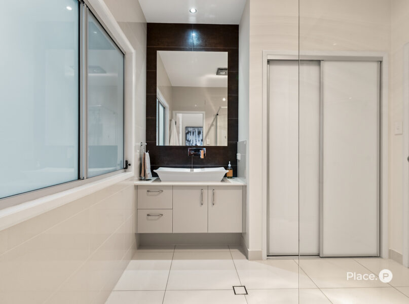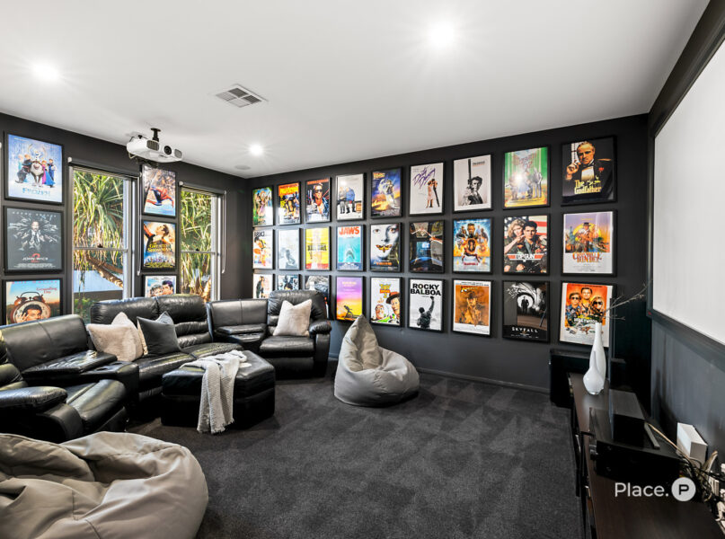 Also on this level, a purpose-built home cinema will enhance your family’s ‘movie nights’ with its projector and surround sound system. A functional mudroom has built-in storage – perfect for families.