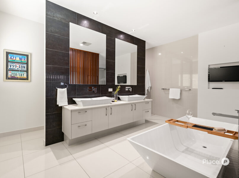 Palatial in its proportions and luxurious in its presentation, an opulent master suite boasts a large walk-through robe, a sitting area and spectacular city views. An attached open ensuite is made truly luxurious by dual vanities, as well as a separate shower and freestanding bath.