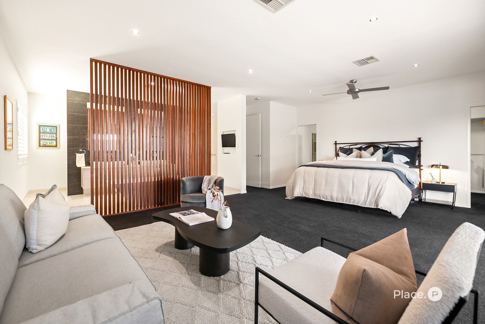 Palatial in its proportions and luxurious in its presentation, an opulent master suite boasts a large walk-through robe, a sitting area and spectacular city views. An attached open ensuite is made truly luxurious by dual vanities, as well as a separate shower and freestanding bath.
