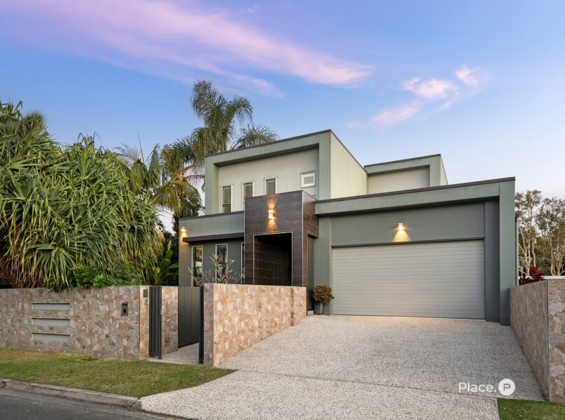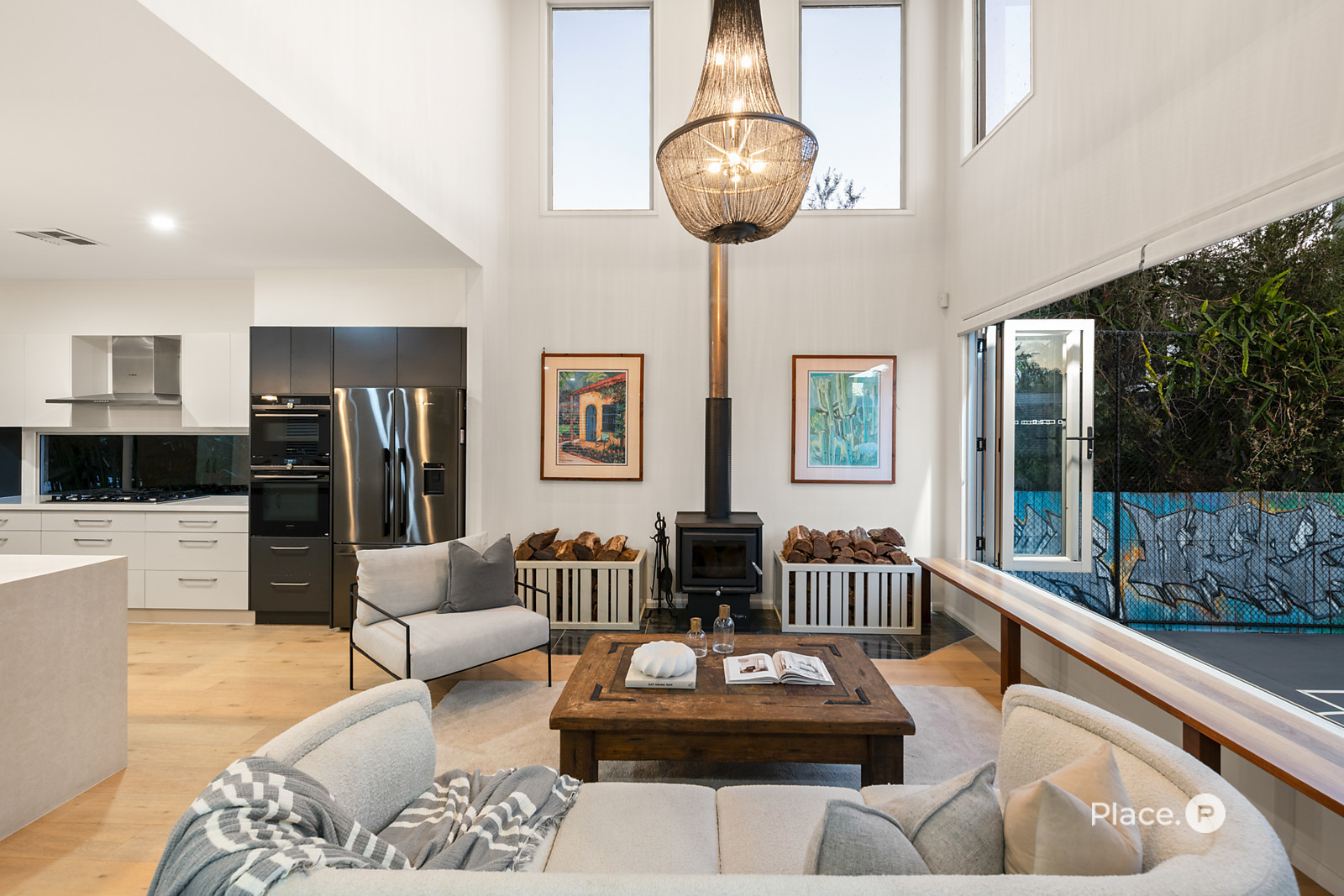 A celebration of contemporary design, the residence is given marvellous street appeal by its striking modern facade, gated entry, large pandanus palm tree and mature front gardens. Continuing the elegance inside are details such as timber floors, lofty ceilings and plantation shutters.