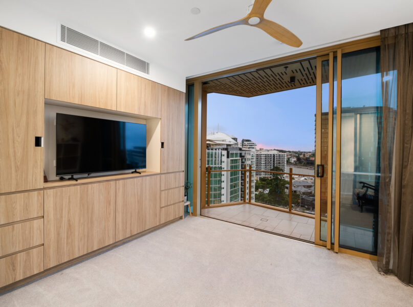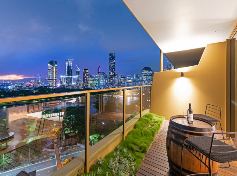 The apartment also boasts one of only six Sky Suites, located on the rooftop level. A separate room which provides incomparable 360-degree views of Brisbane. The Sky Suite boasts a corner position, has been renovated adding a meticulous wine rack, aesthetically stunning rock wall and large balcony to enjoy the sunset with friends and family.