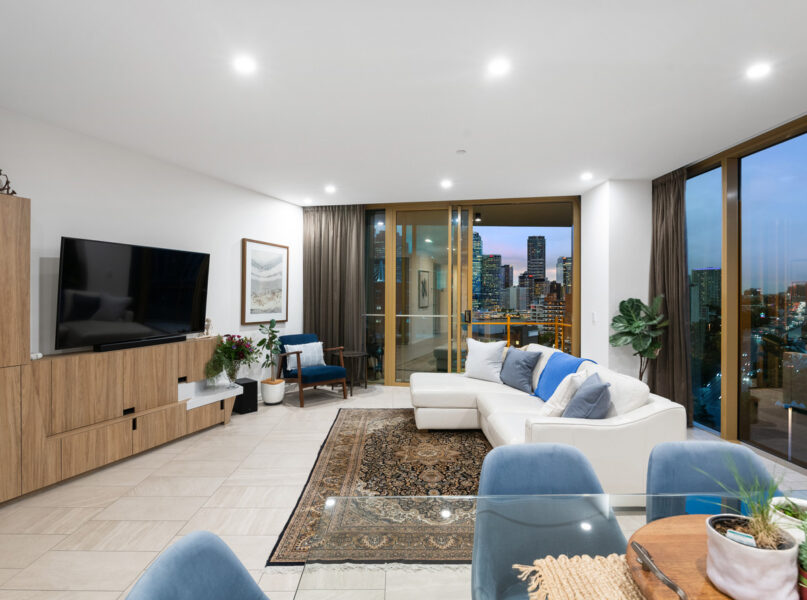 Thoughtfully designed with stylish interiors, high-end finishes and incredible entertainment options, this modern residence showcases an incredible vista, providing front row seats to the sparkling city skyline and Brisbane River.