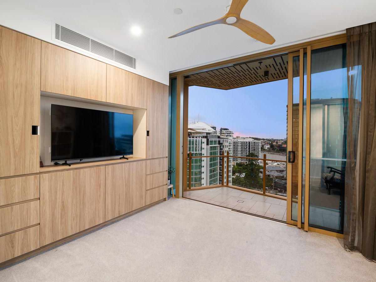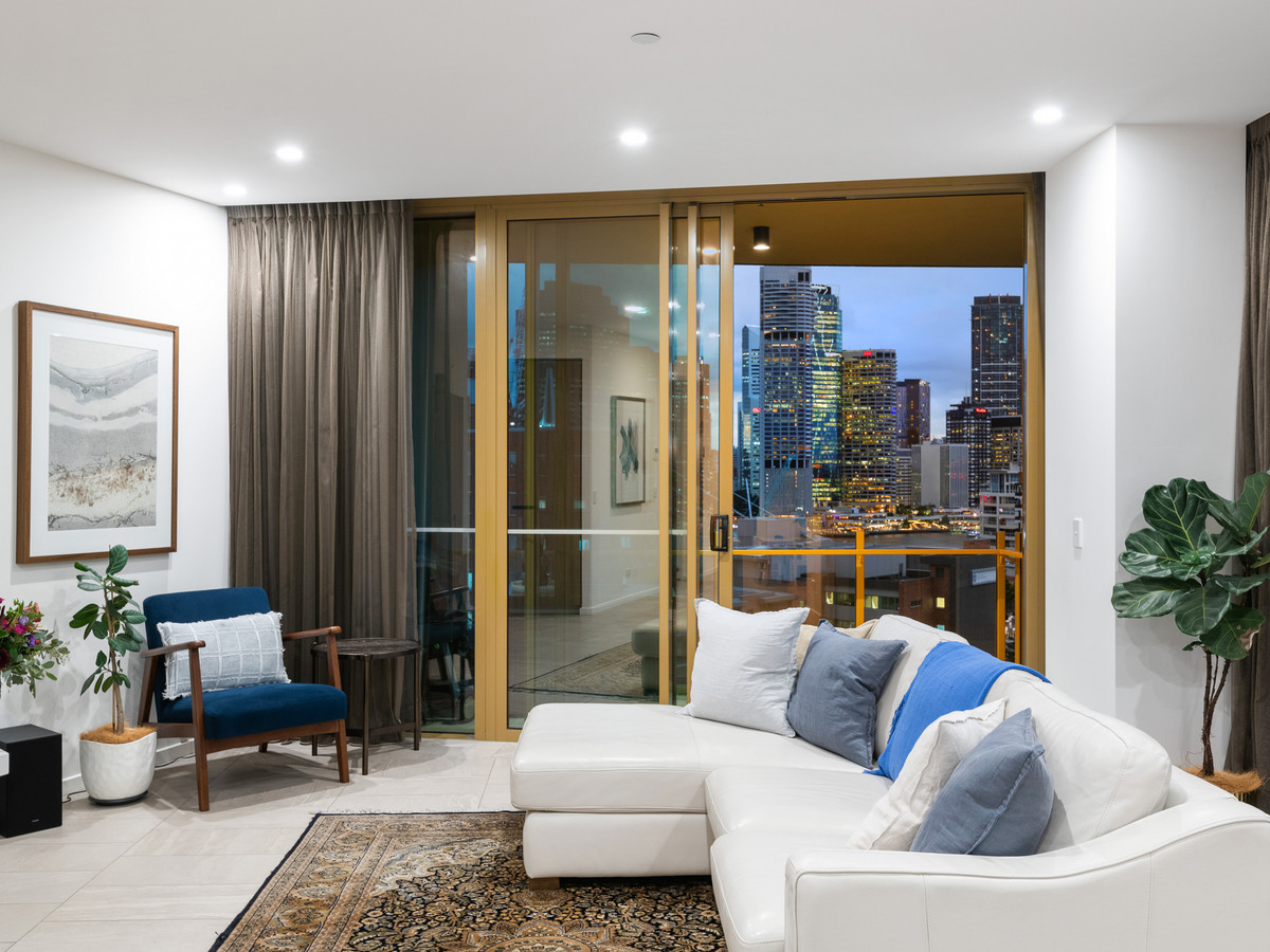 Thoughtfully designed with stylish interiors, high-end finishes and incredible entertainment options, this modern residence showcases an incredible vista, providing front row seats to the sparkling city skyline and Brisbane River.