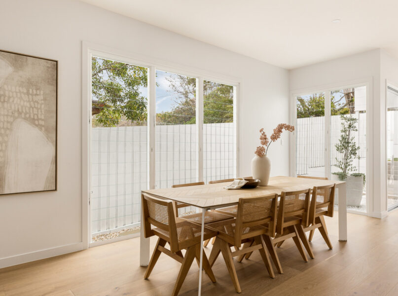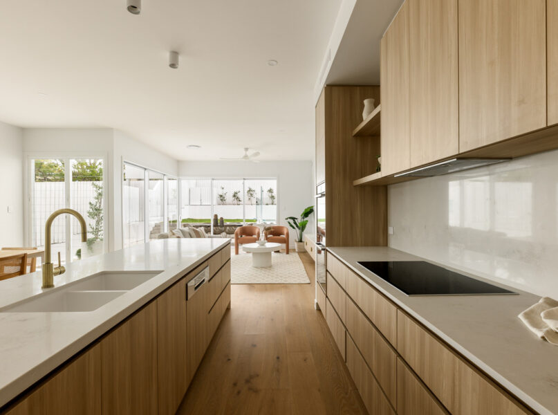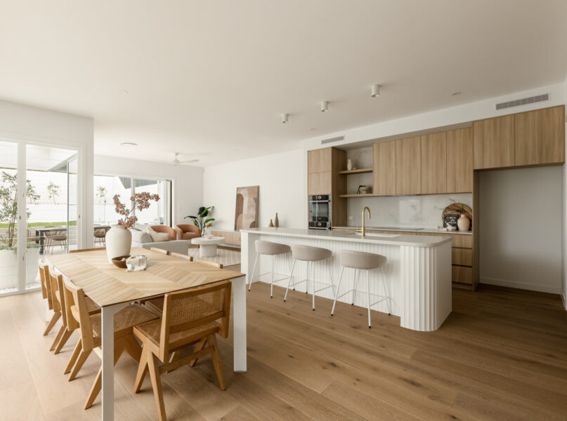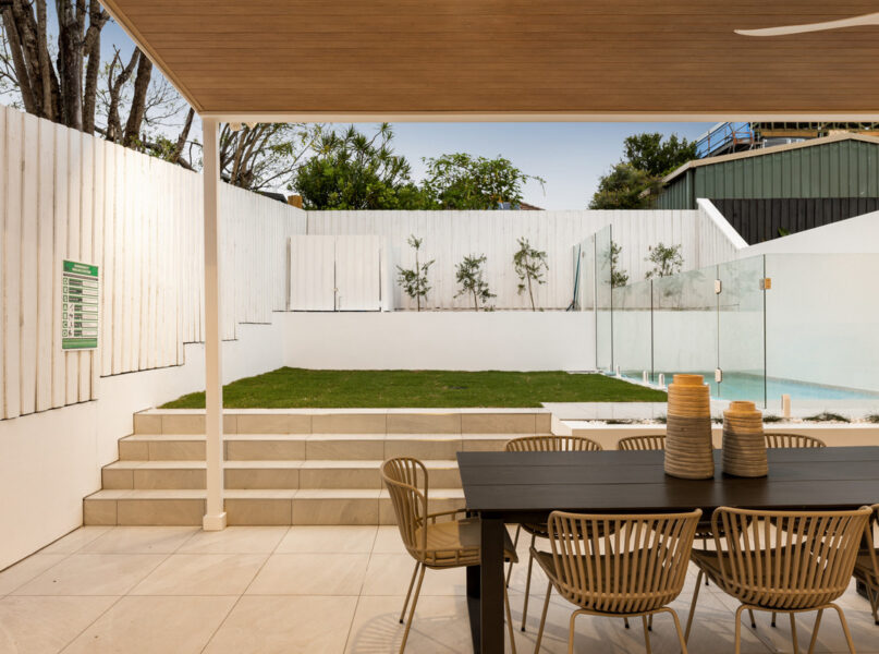 Encouraging indoor-outdoor living, an attached and covered al fresco area has a full outdoor kitchen with a built-in barbecue. There is also a fully-fenced grassed rear yard benefitting from raised garden beds and a glass-framed in-ground swimming pool.