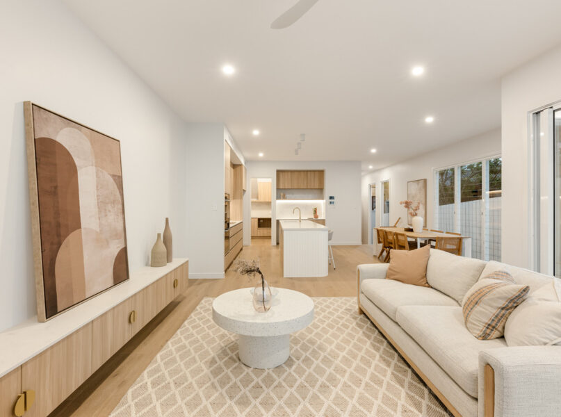 Showcasing sleek lines, a striking modern facade is complemented by landscaping gardens and gives the residence incredible street appeal. Inside, exquisite timber floors, lofty ceilings and a calming neutral colour palette feature throughout.