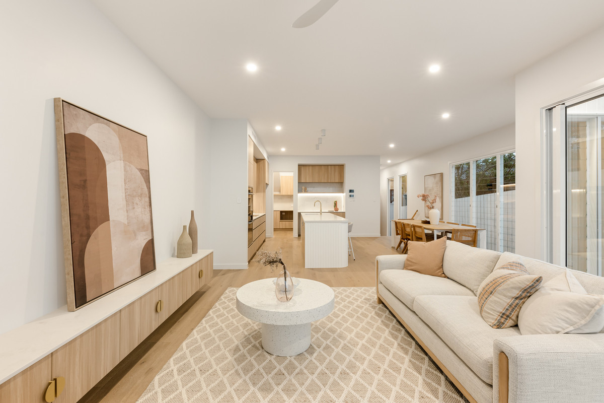 Showcasing sleek lines, a striking modern facade is complemented by landscaping gardens and gives the residence incredible street appeal. Inside, exquisite timber floors, lofty ceilings and a calming neutral colour palette feature throughout.