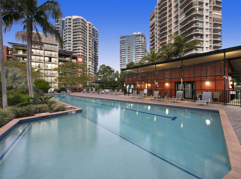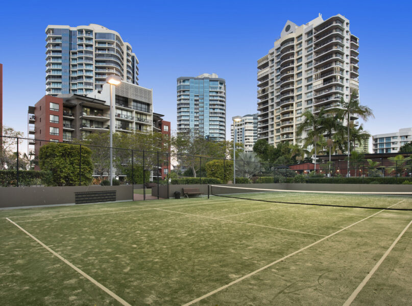 ‘The Docks on Goodwin’ facilities feature a sparkling 25m heated lap pool, spa, multiple BBQ areas, media/cinema room, full-sized tennis court, sauna, gymnasium, and on-site management.