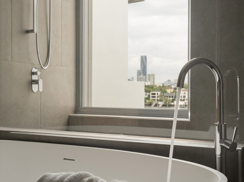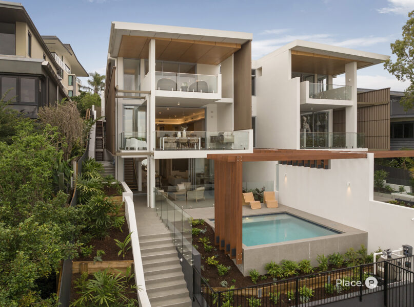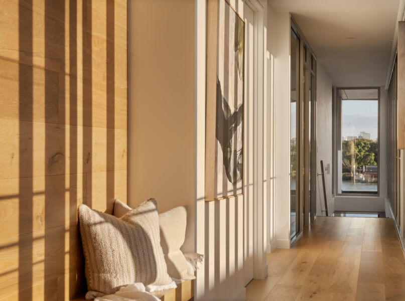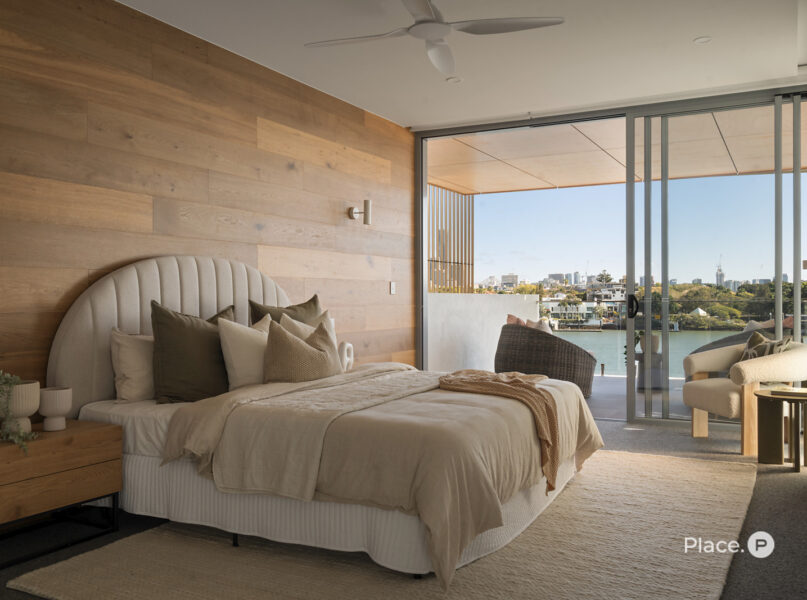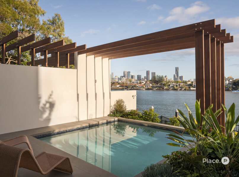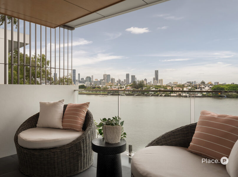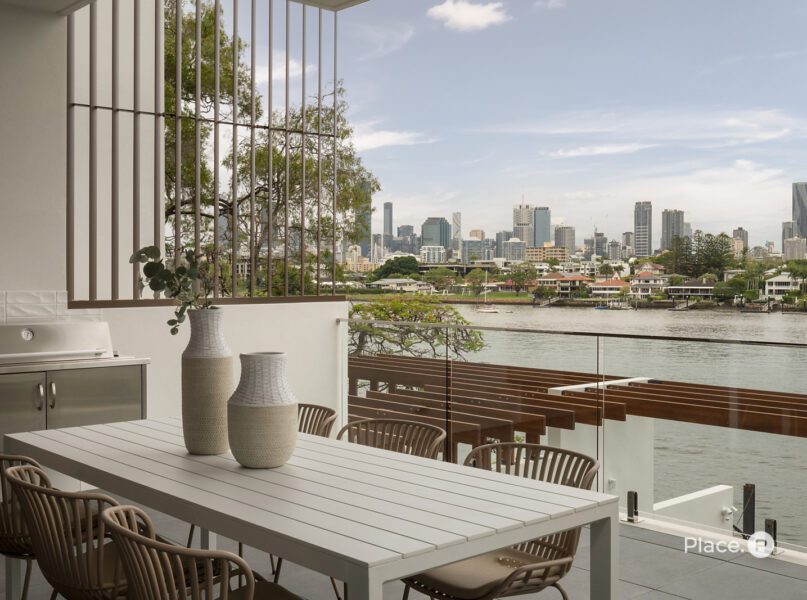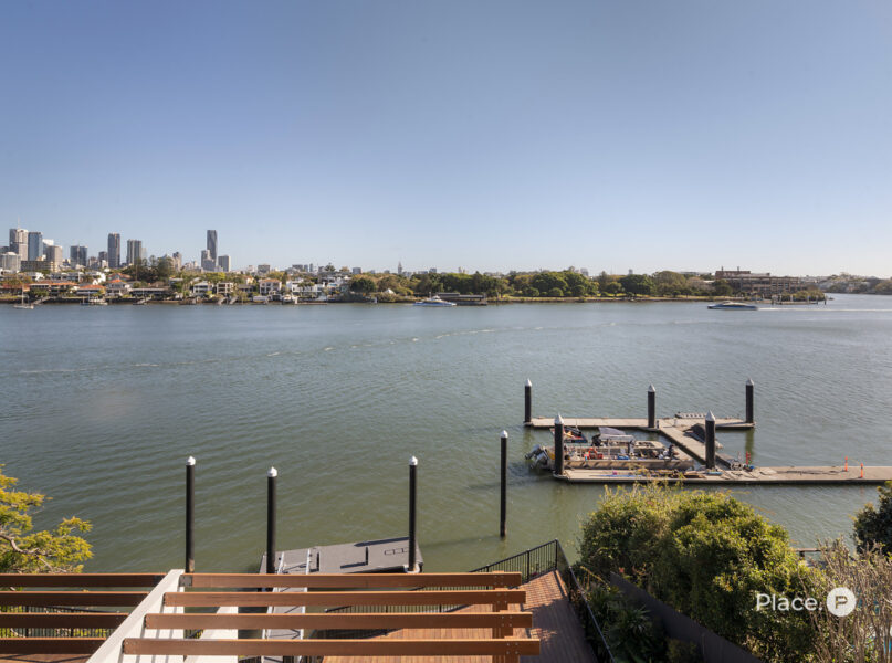 Benefitting from a prime north-eastern aspect capturing refreshing breezes and warm winter sunlight, the riverfront house is a spectacular vantage point for admiring Brisbane’s dynamic landscapes including outlooks up both the Bulimba Reach of the Brisbane River and the Kangaroo Point river reach. Looking out across the river to tree-dotted New Farm Park and the dazzling city skyline beyond, the property welcomes you to enjoy a breathtaking views in essentially each zone. Adding to its appeal is its sophisticated interiors, which showcase elegant timber floors and lofty ceilings.