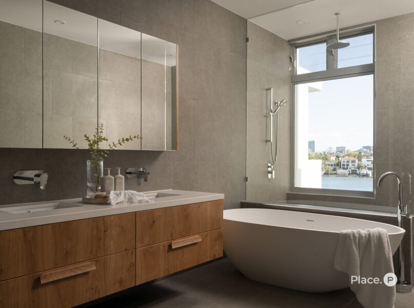 Wonderfully private, a lavish master suite crowns the third level. Opening out to a private balcony commanding mesmerising river views, a plush carpeted master bedroom has a large walk-in robe. An attached ensuite showcases floor-to-ceiling tiling, dual vanities, a freestanding bath and a frameless shower-with-a-view.