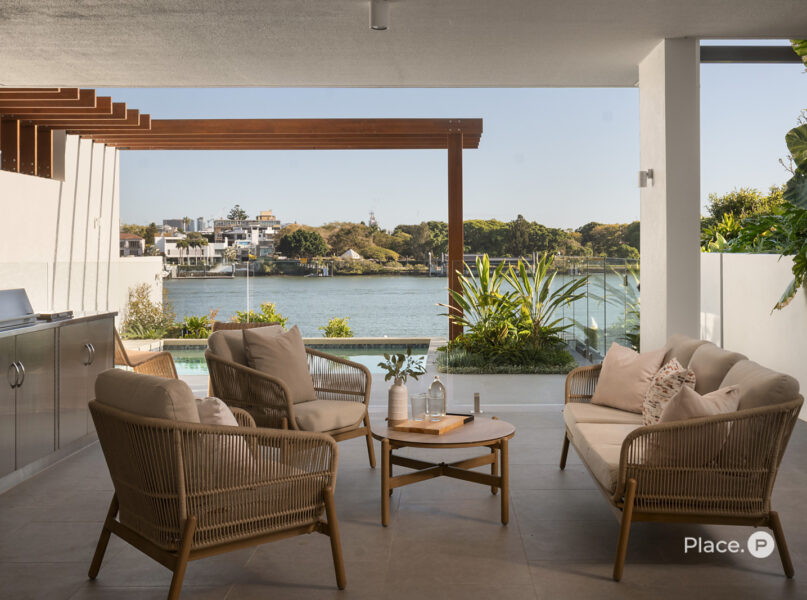 Extending the entertainment options downstairs, another generous living area has its own kitchenette. Steps away, a second al fresco area also boasting a full outdoor kitchen leads to a terraced rear yard and a spacious high river deck at the river edge. Here, you will find an opulent infinity-edge in-ground swimming pool, established gardens and direct shared pontoon access.
