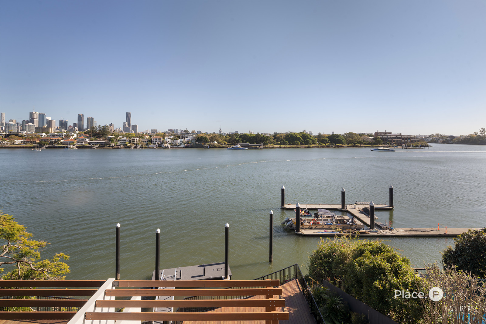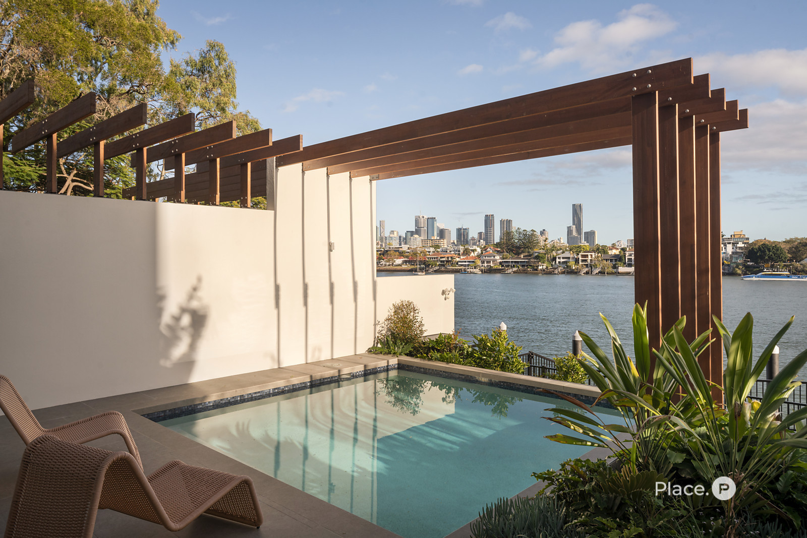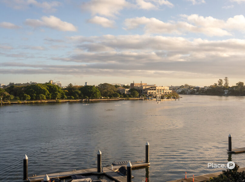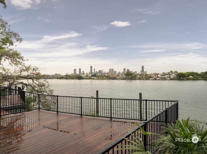 Benefitting from a prime north-eastern aspect capturing refreshing breezes and warm winter sunlight, the riverfront house is a spectacular vantage point for admiring Brisbane’s dynamic landscapes including outlooks up both the Bulimba Reach of the Brisbane River and the Kangaroo Point river reach. Looking out across the river to tree-dotted New Farm Park and the dazzling city skyline beyond, the property welcomes you to enjoy a breathtaking views in essentially each zone. Adding to its appeal is its sophisticated interiors, which showcase elegant timber floors and lofty ceilings.