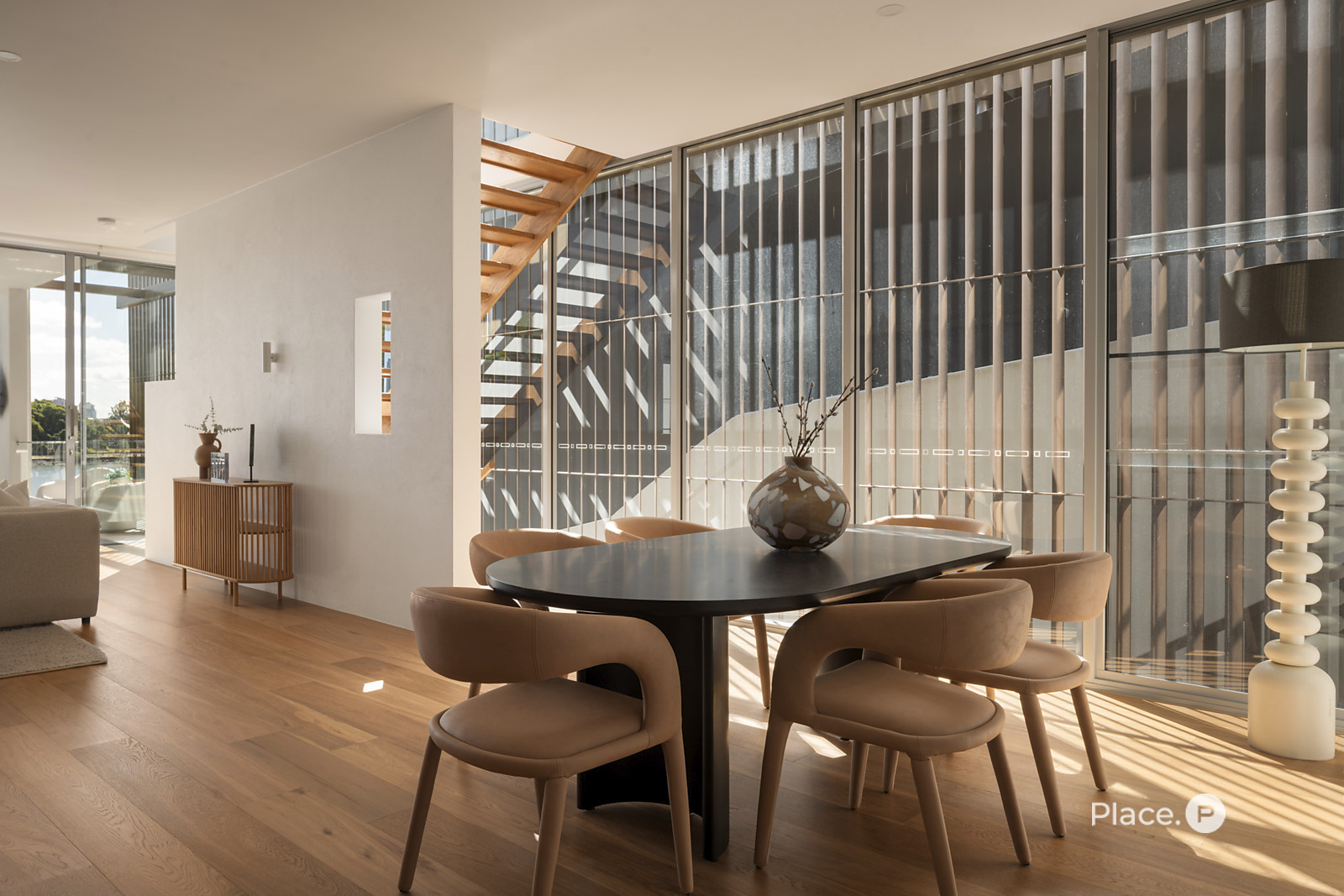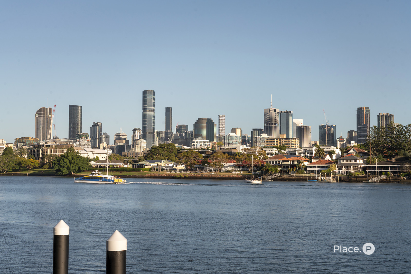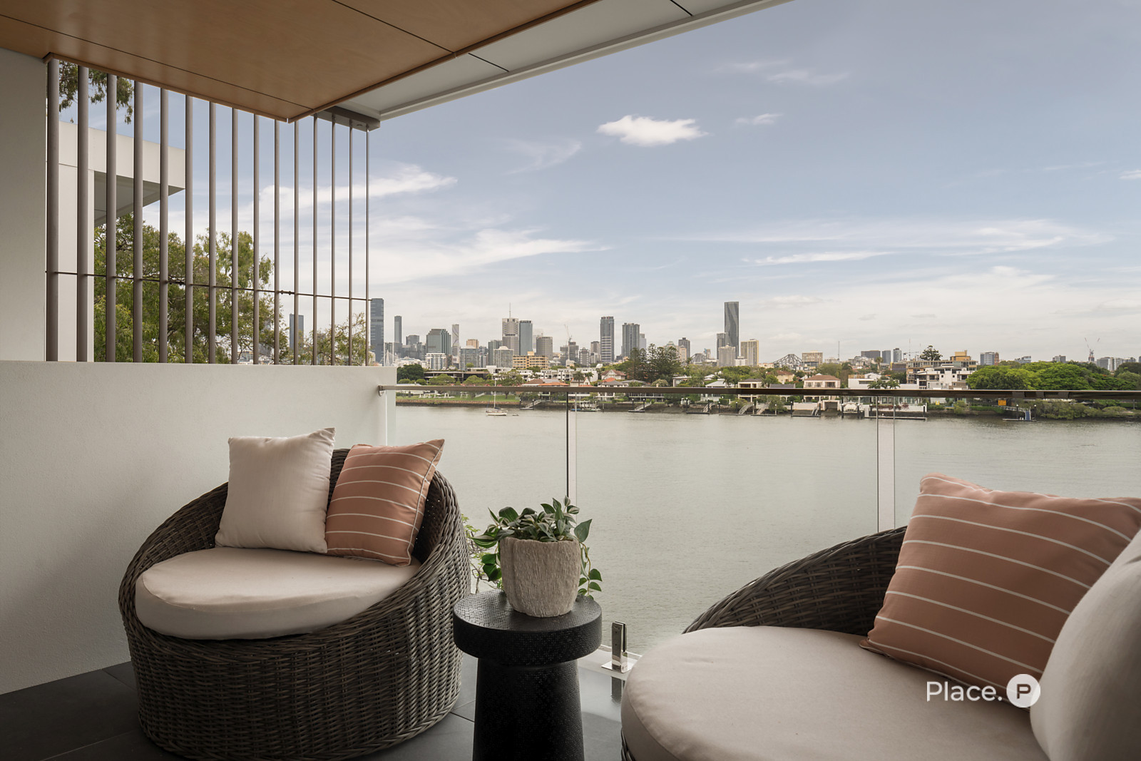 Benefitting from a prime north-eastern aspect capturing refreshing breezes and warm winter sunlight, the riverfront house is a spectacular vantage point for admiring Brisbane’s dynamic landscapes including outlooks up both the Bulimba Reach of the Brisbane River and the Kangaroo Point river reach. Looking out across the river to tree-dotted New Farm Park and the dazzling city skyline beyond, the property welcomes you to enjoy a breathtaking views in essentially each zone. Adding to its appeal is its sophisticated interiors, which showcase elegant timber floors and lofty ceilings.