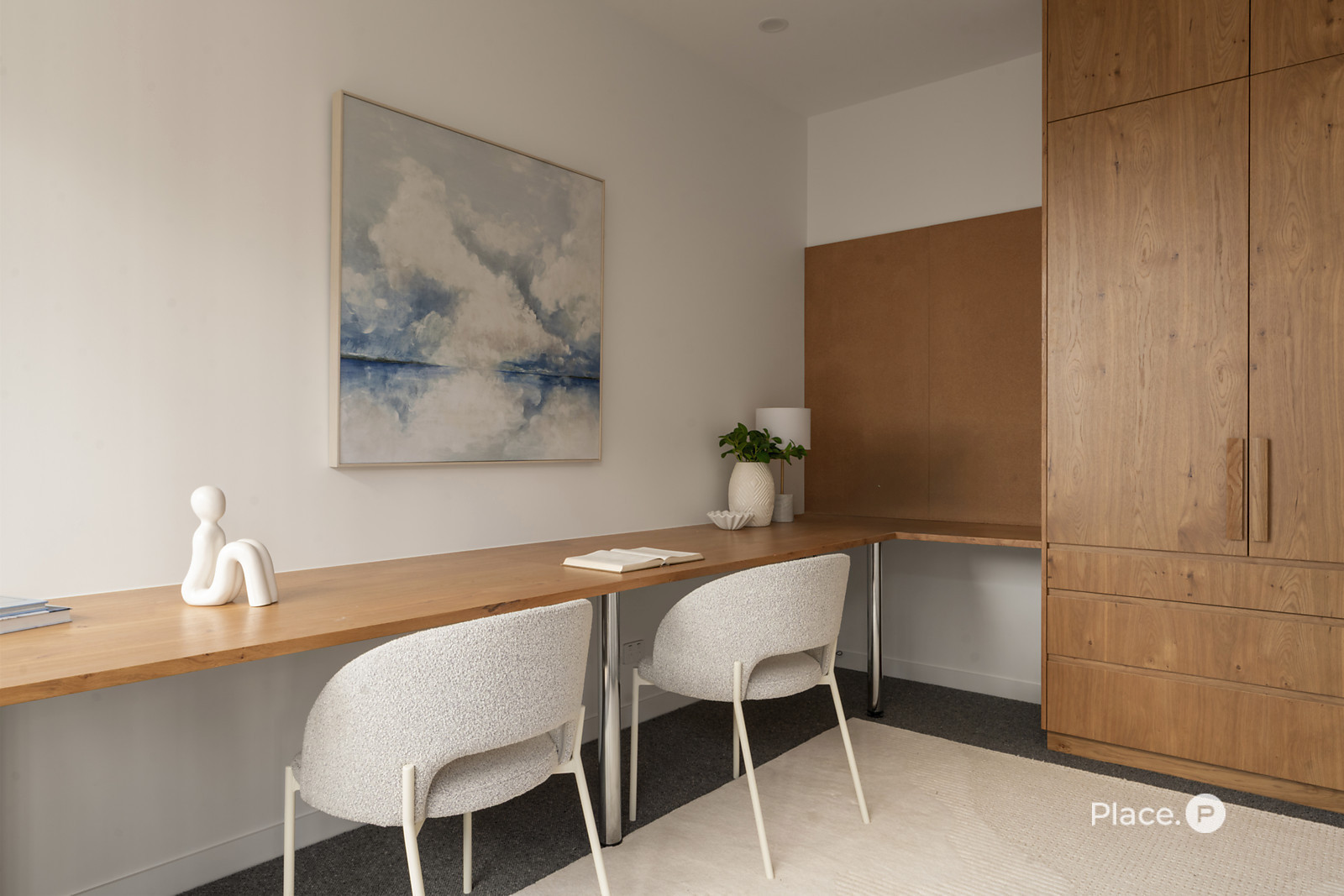 There is also a dedicated study with built-in desks, while a well-appointed main bathroom and two additional bedrooms featuring built-in robes are downstairs.