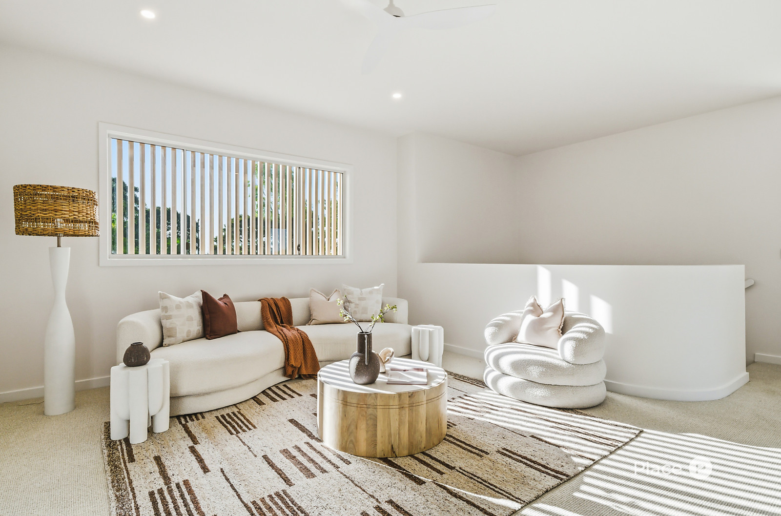 Upstairs, a second living area offers a peaceful retreat, while the master suite delivers a private sanctuary with one of the largest walk-in island robes on the market, complemented by a double vanity ensuite and freestanding bath.