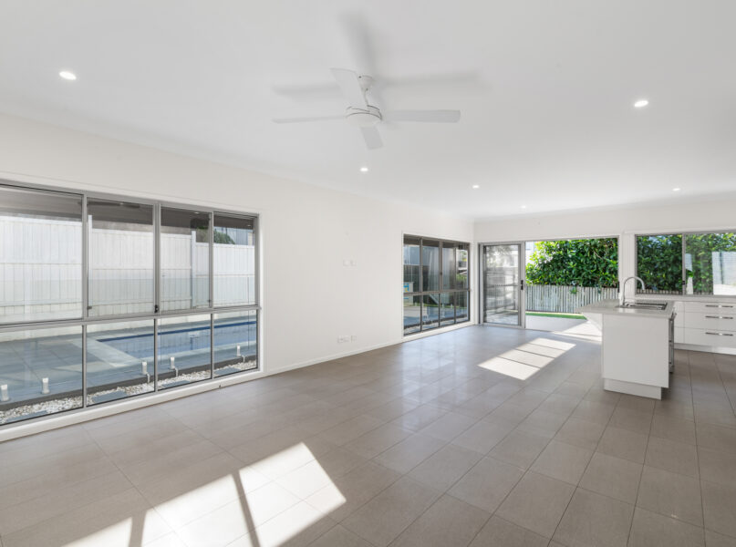 Hidden away on a quiet street, the home is wrapped in east facing lawns and a covered outdoor entertainment space. With a large open plan living dining area across the lower level and an additional rumpus area upstairs, this home offers seamless living for a growing family. It is an easy-upkeep package in Brisbane’s inner north.