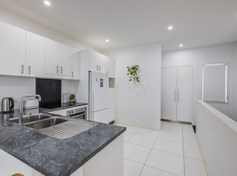 Open plan living space, complete with crisp white walls, tiled floor and access to the deck through large slide doors Air-conditioned living Large deck with roof line cover Modern kitchen with stone benches, stainless steel appliances including dishwasher Single lockup carport with remote door access Built in 2011 Complex of 19 townhouses.