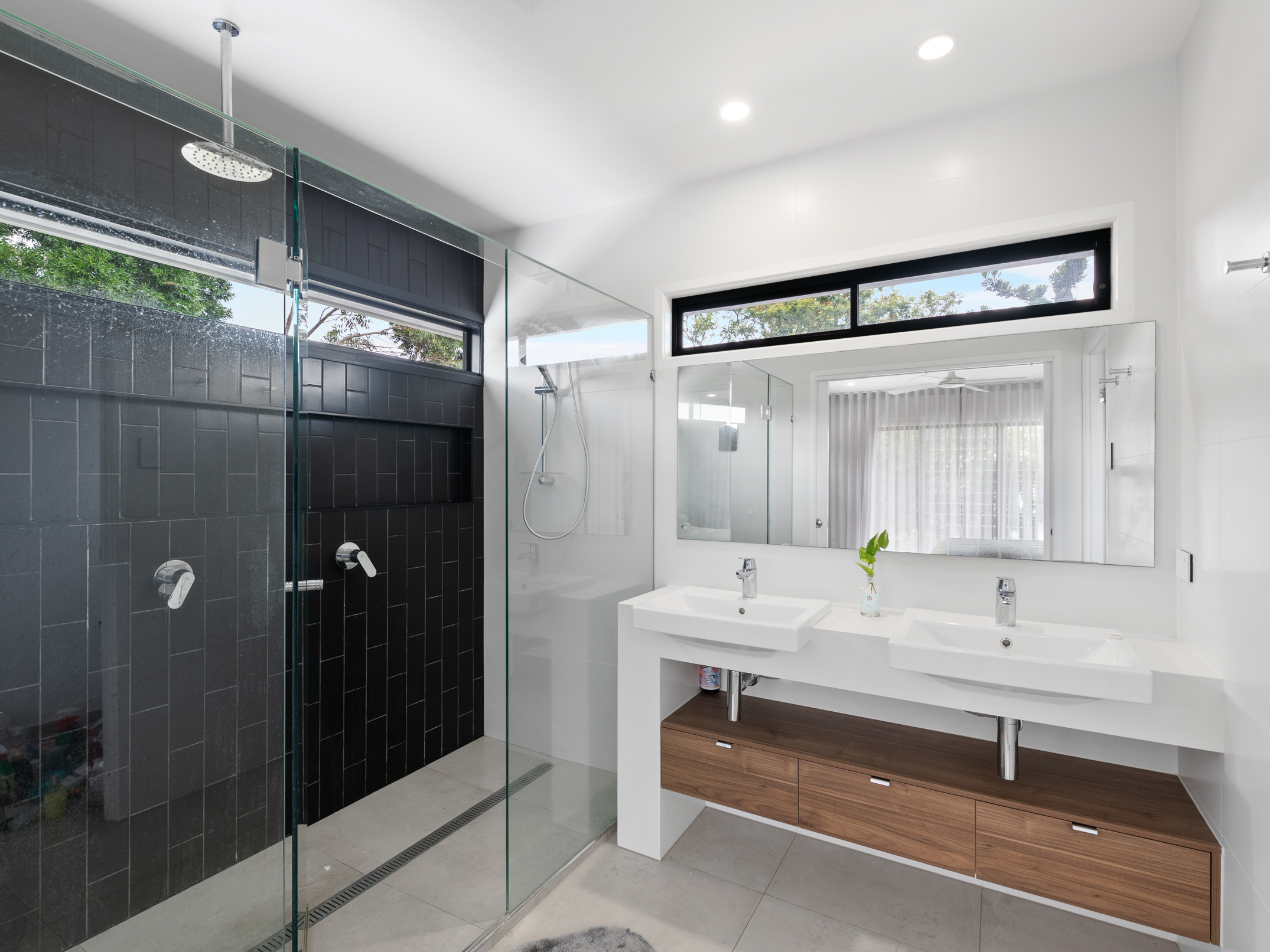 There is also a lavish master bedroom featuring a walk-in robe and floor-to-ceiling windows, plus a luxurious ensuite with dual sinks and a dual-head shower. Four additional bedrooms displaying built-in robes are serviced by a stylish main bathroom. Presented with ceiling fans and ducted air-conditioning.