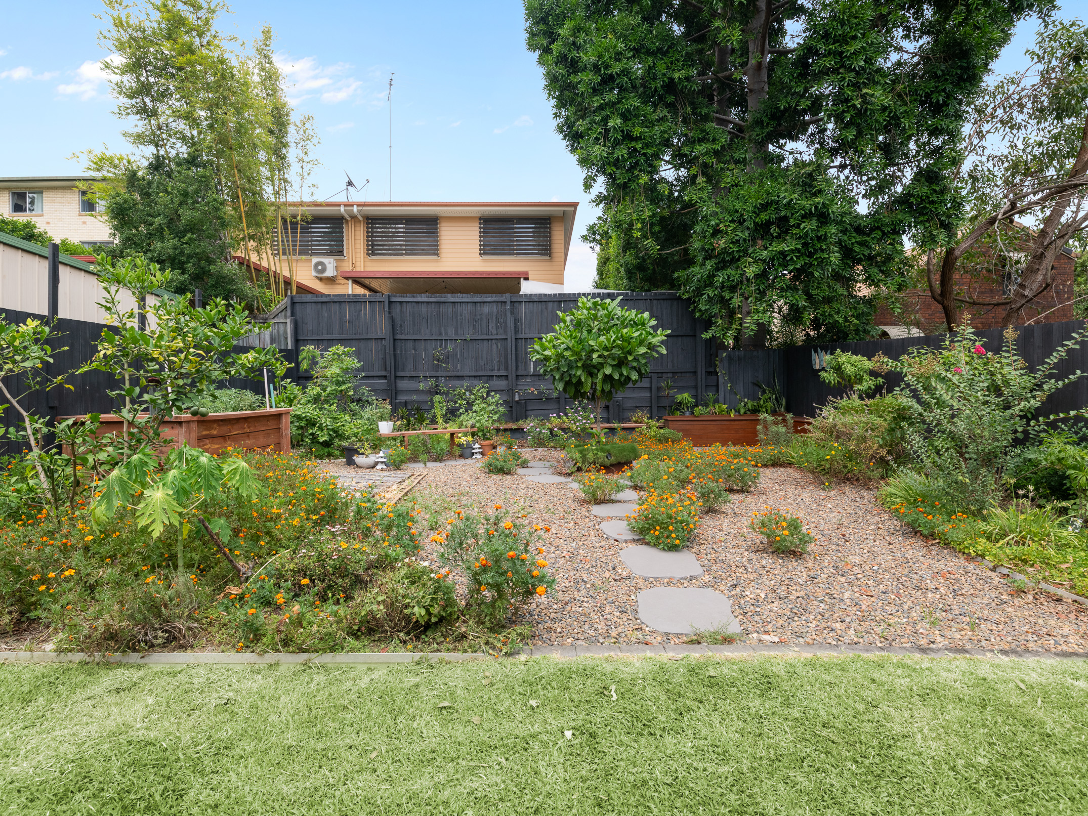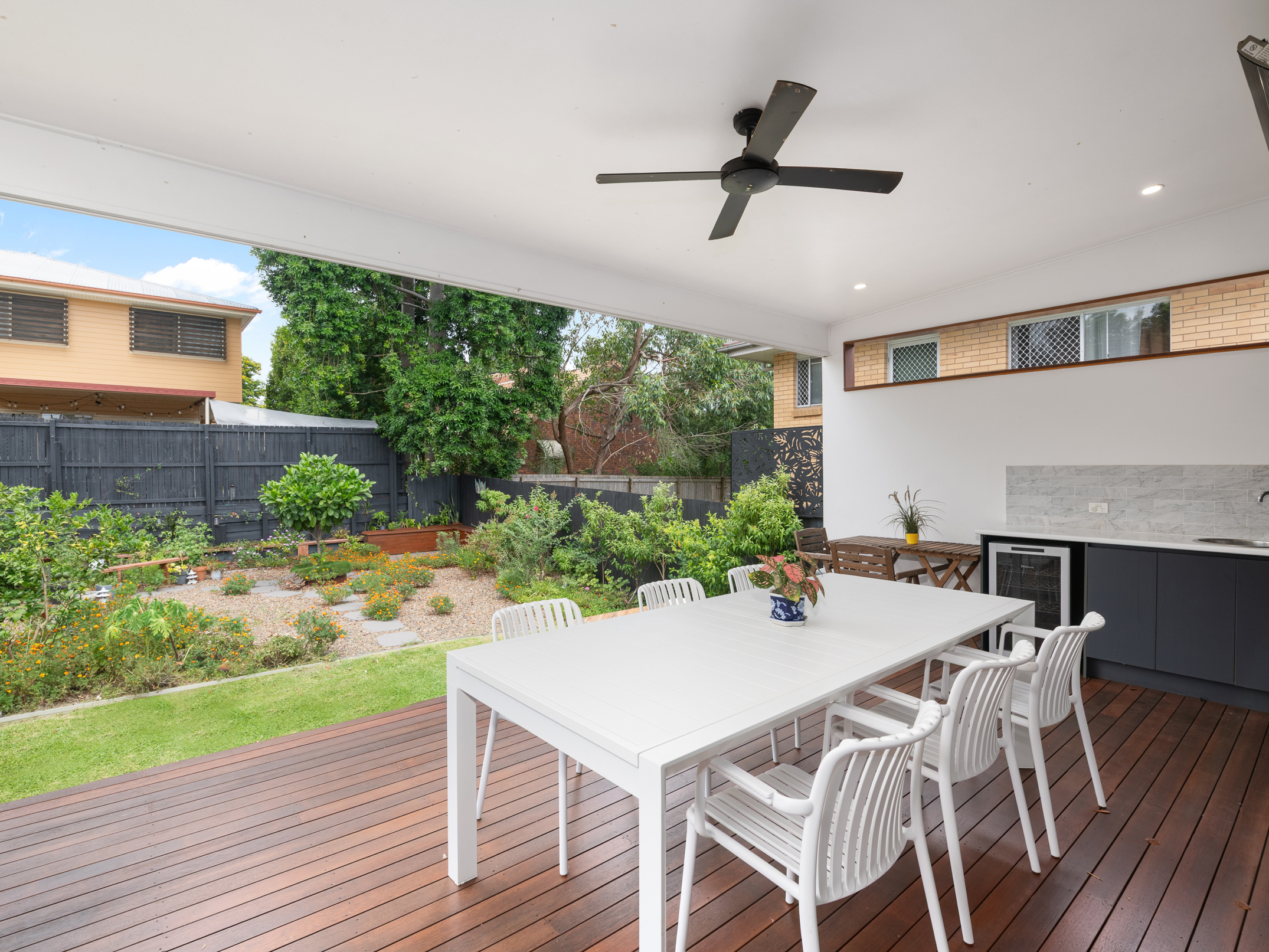 What will truly impress is the way this combined living area seamlessly connects to the outdoors. Accessible via a large glass sliding door, a generous covered timber deck with an in-built bench seat flows from here and leads to the home’s expansive fully-fenced grassed rear yard. You will also find attractive landscaped gardens.